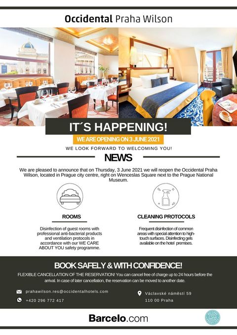 Occidental Praha Wilson hotel will reopen on Thursday, June 3, 2021!