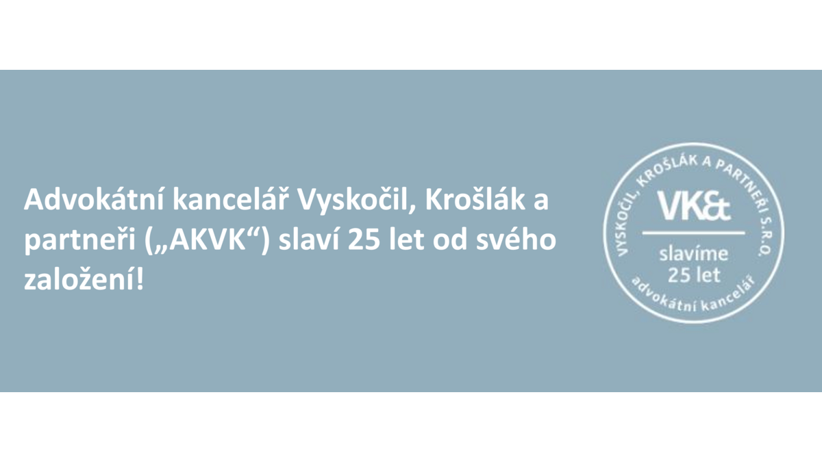 Advokátní kancelář Vyskočil, Krošlák a partneři („AKVK“) slaví 25 let od svého založení!