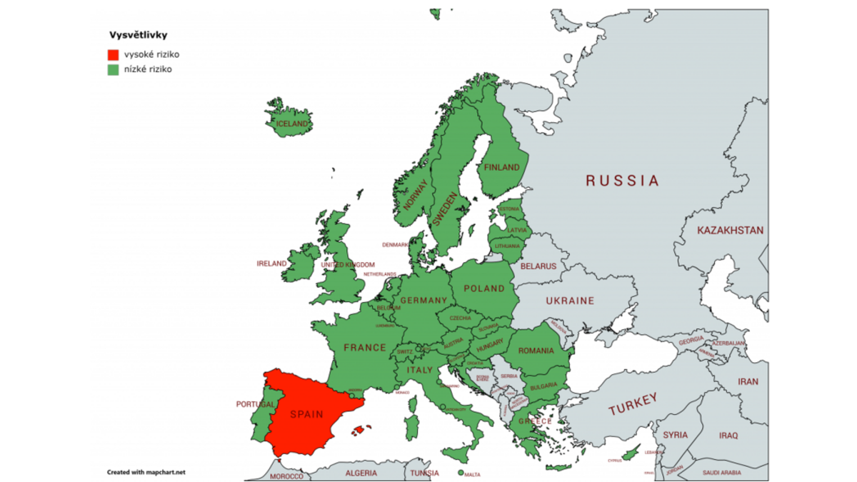 Ministerstvo zdravotnictví ČR z dostupných dat Evropského střediska pro prevenci a kontrolu nemocí (ECDC) vyhodnocuje epidemiologickou situaci a aktualizuje seznam zemí s nízkým rizikem nákazy onemocnění COVID-19. Aktuální seznam zemí s nízkým rizikem nákazy na webu Ministerstva zdravotnictví ČR