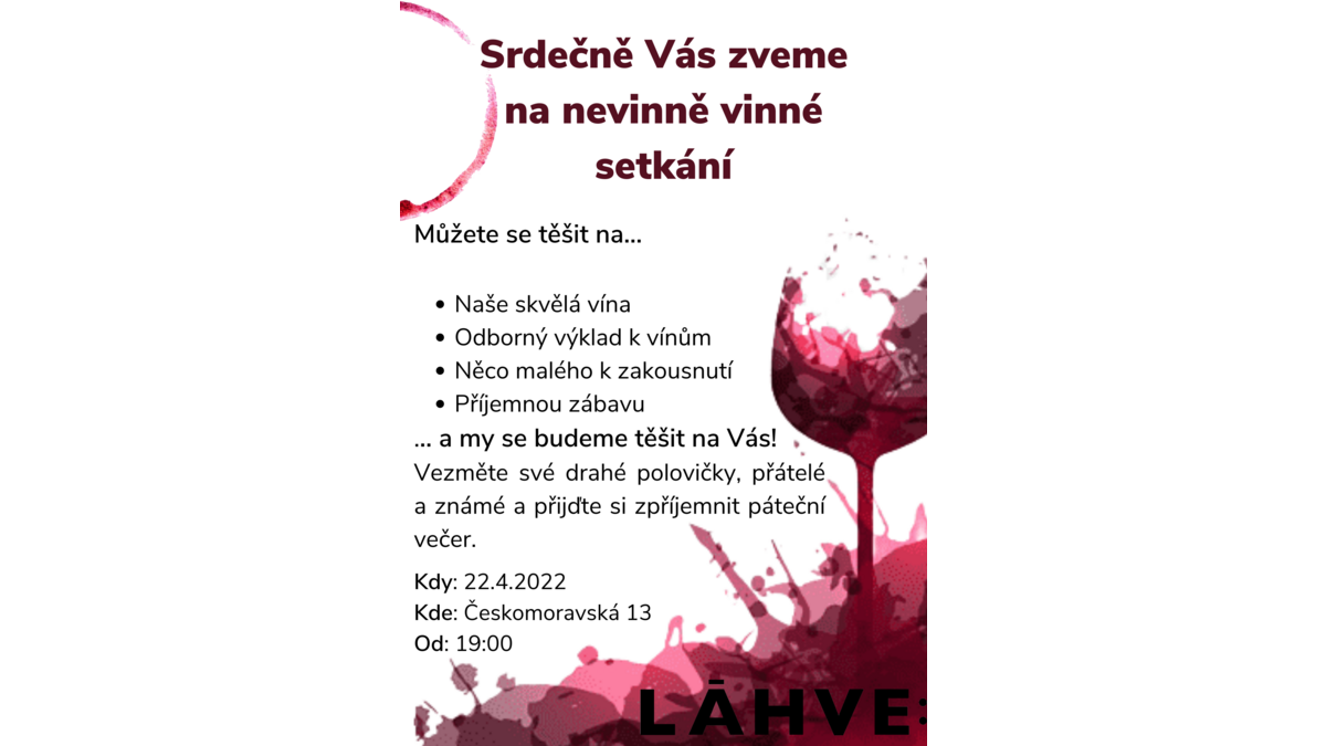 Láhve: - Nevinně vinnou oslavu narozenin