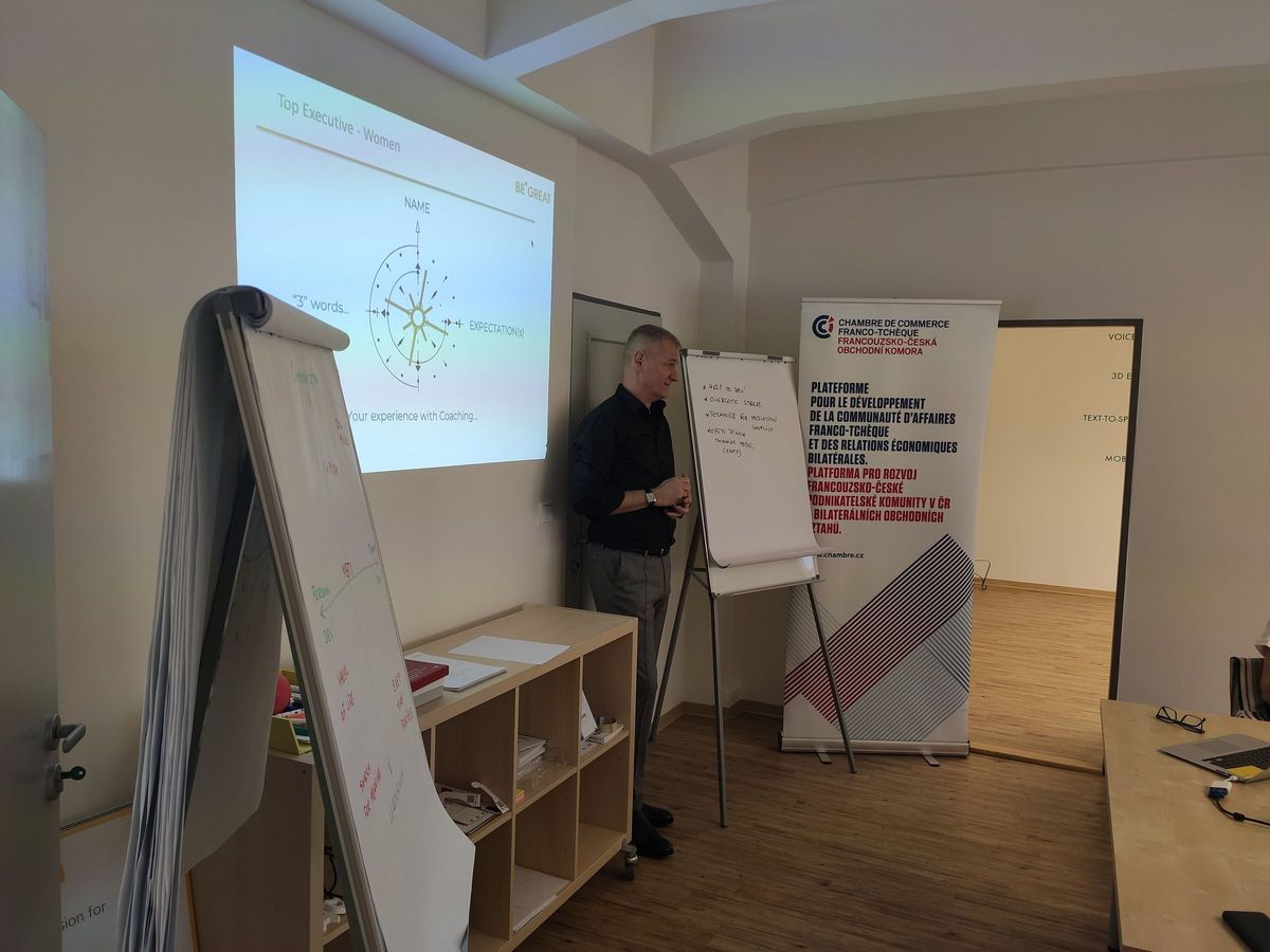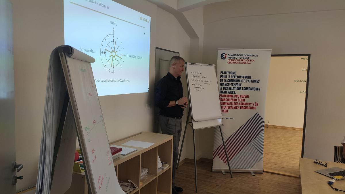 Ať už na pozici ředitelky firmy, náměstkyně minsitra nebo na jiných manažerských pozicích, všechny měly během tohoto odpoledne příležitost seznámit s koučovacícmi metodami, které řízení lidí mohou usnadnit. Setkání vedl kouč a spoluzakladatel personální agentury peopleTObusiness Olivier Bauduin.