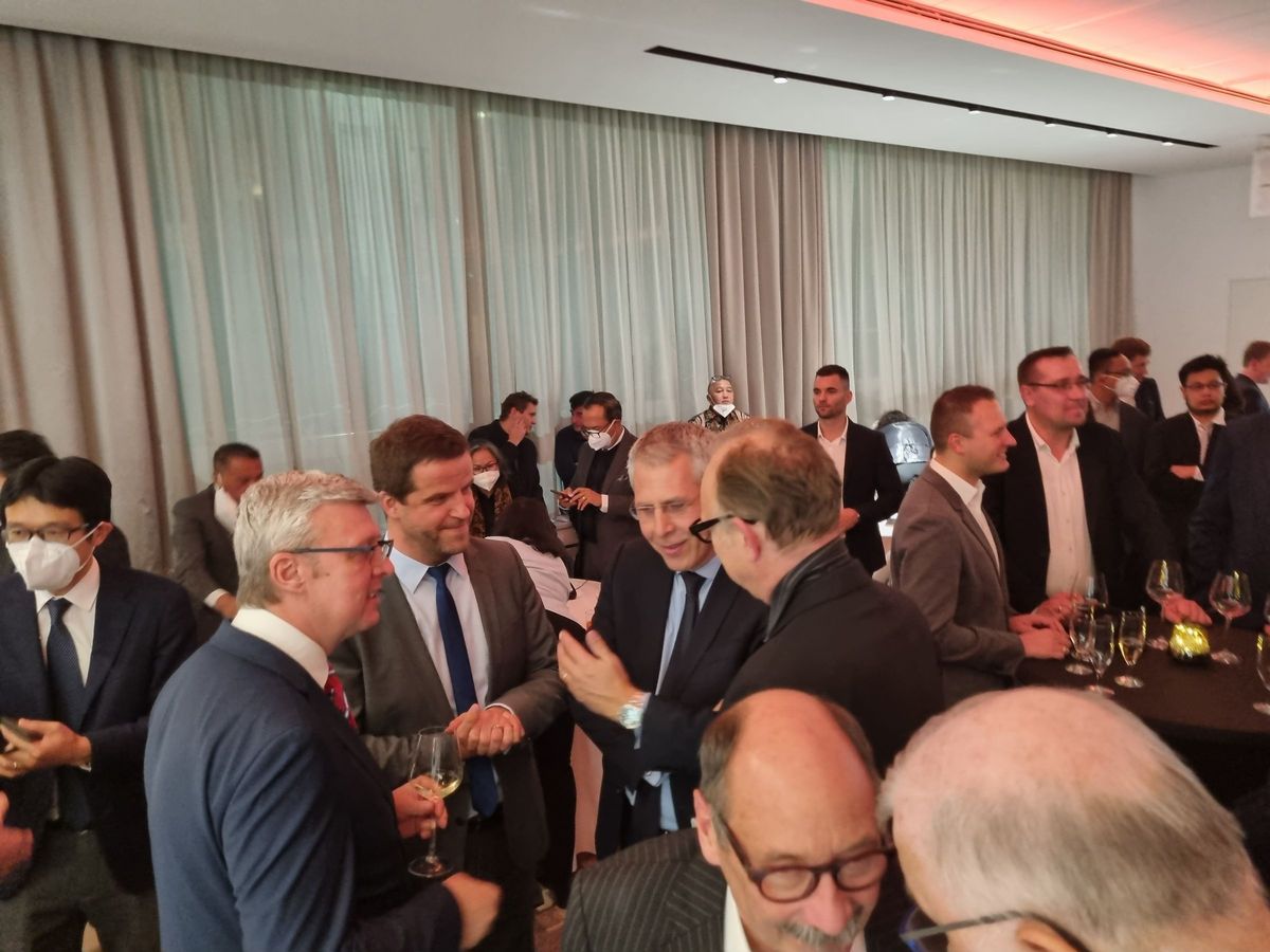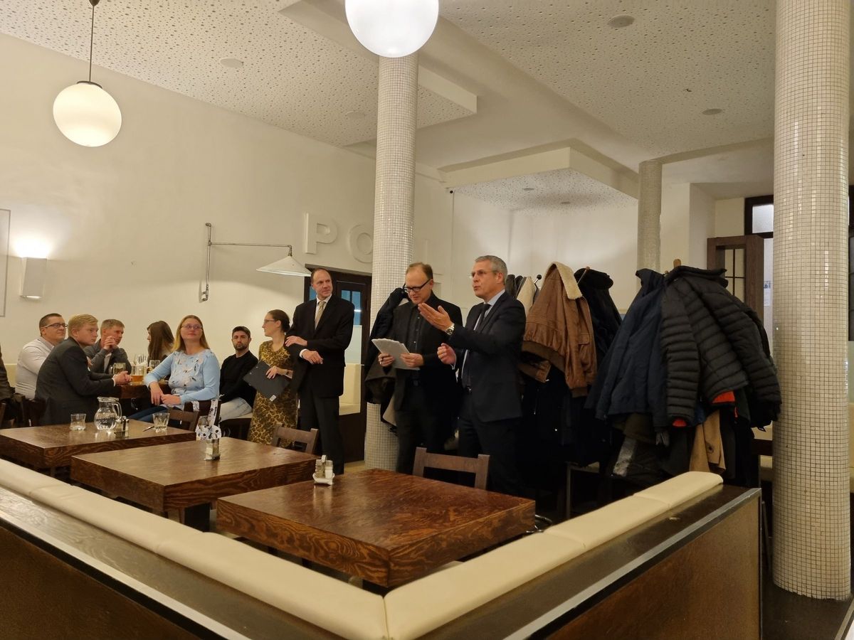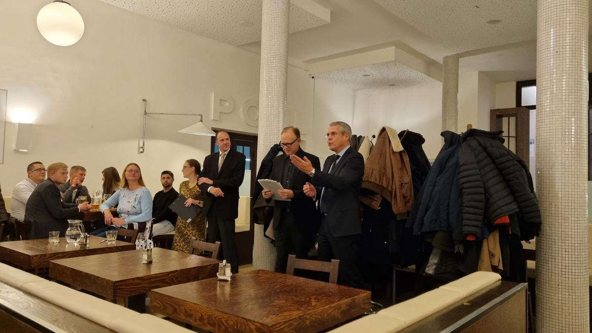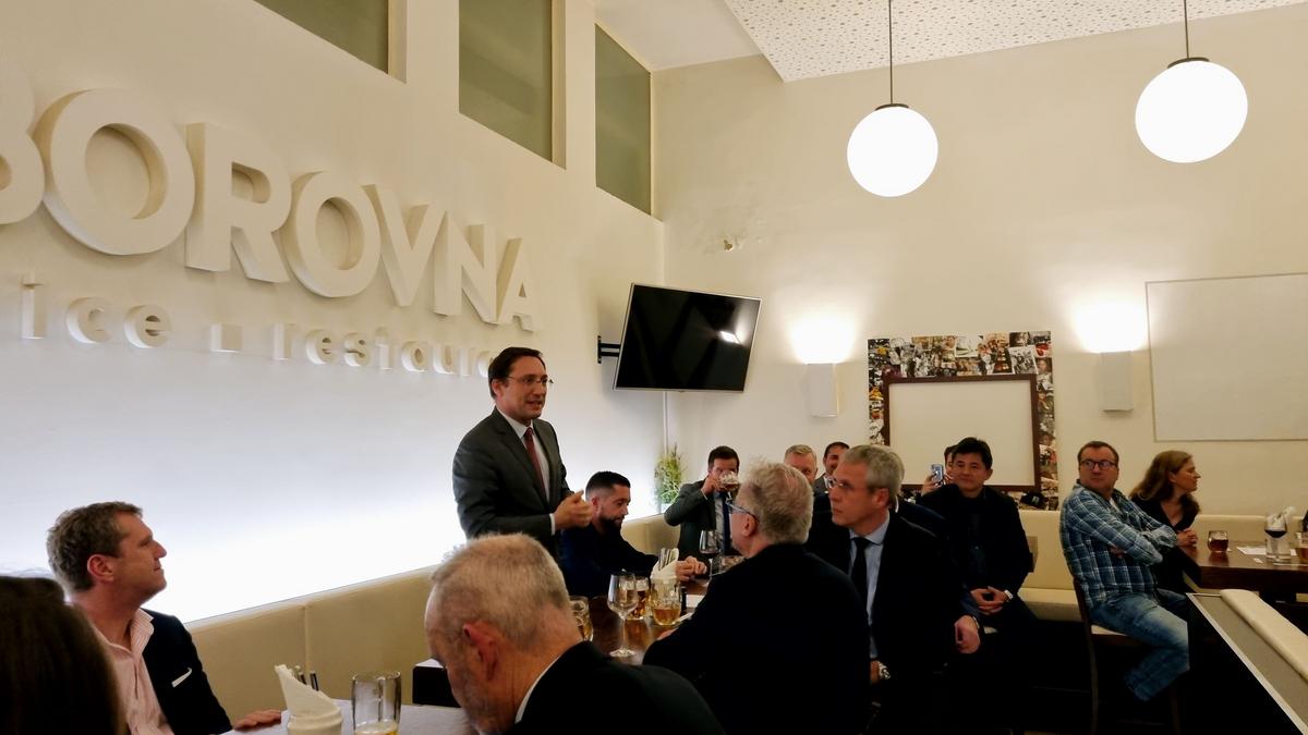 Delegace se následně připojila ke Komoře a vystavovatelům Francouzského pavilonu na večeři za přítomnosti J. E. pana Alexise Dutertra, velvyslance Francie v České republice.