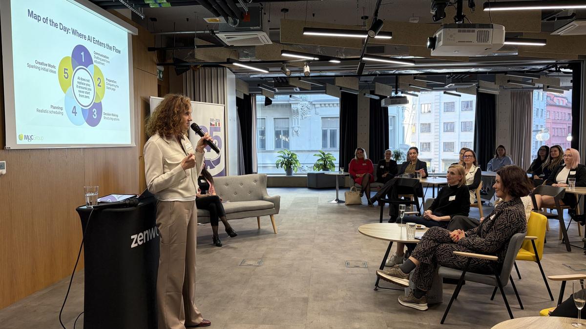 Více než 60 účastnic se sešlo v coworkingovém prostoru Zenwork, aby společně prozkoumaly konkrétní dopady umělé inteligence v pracovním prostředí s cílem podpořit jasnější, efektivnější a lépe zvládnutelné využívání těchto technologických nástrojů.