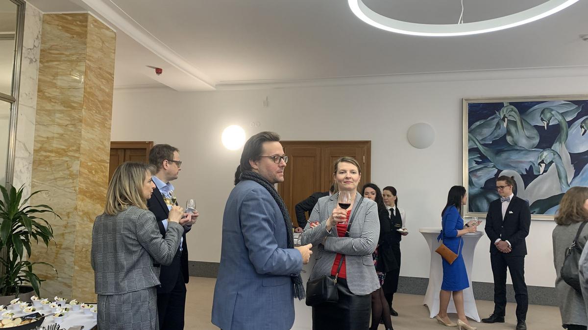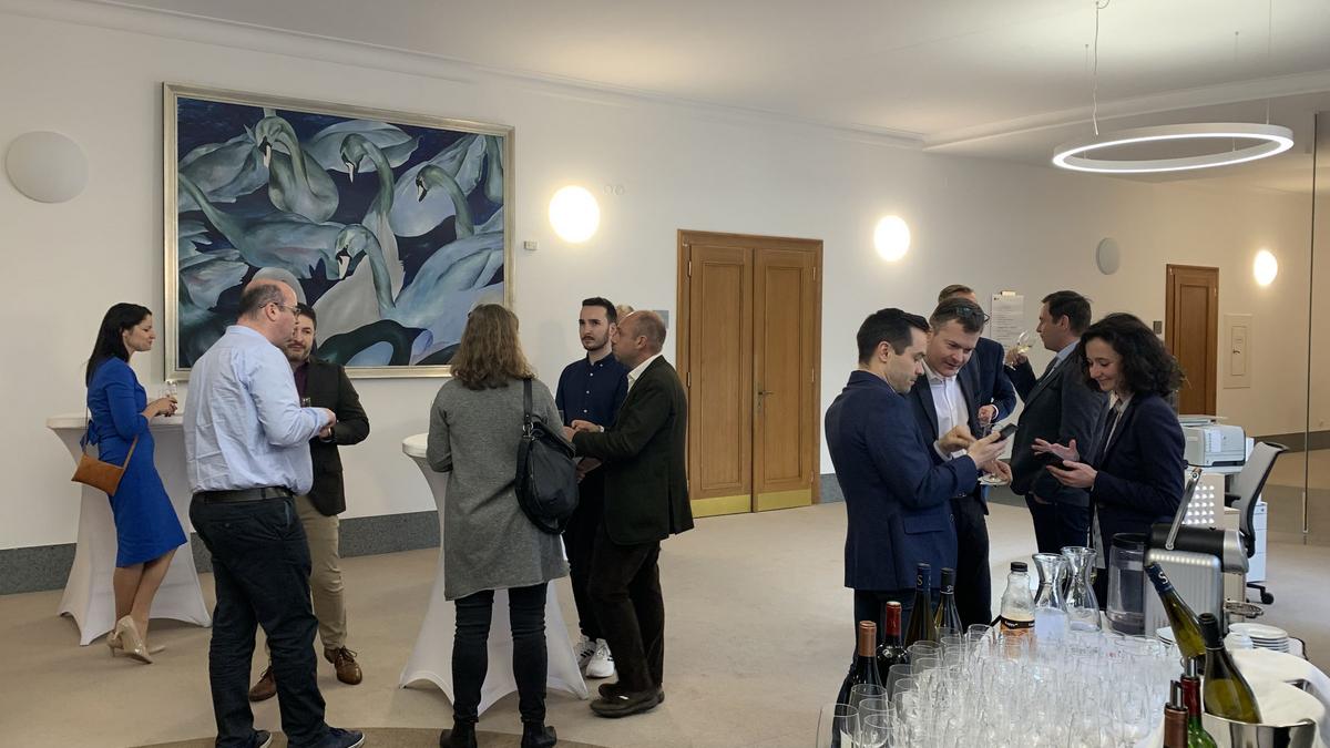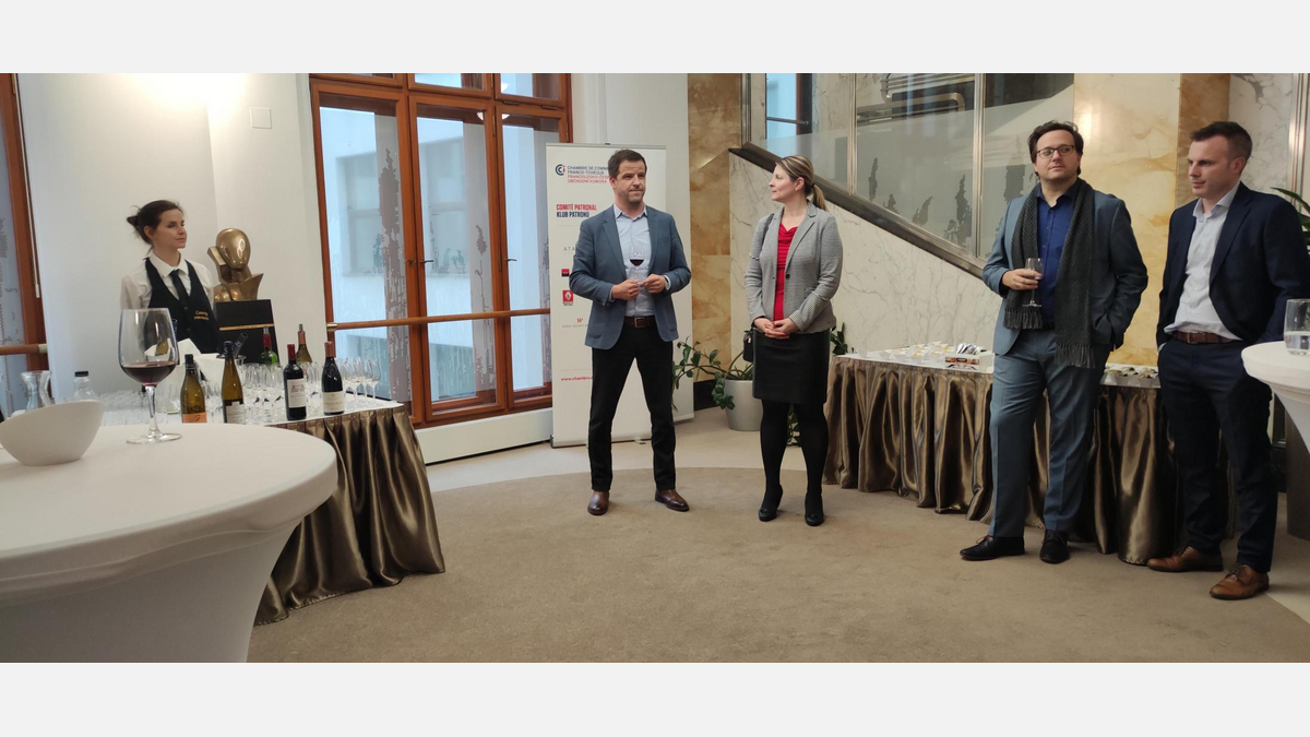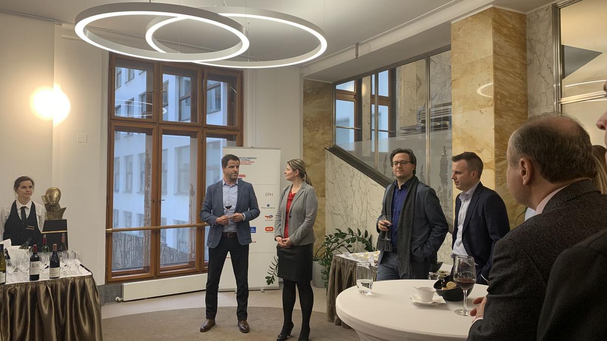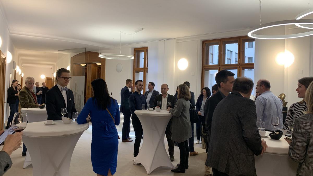Díky Ditě Pasquier, místopředsedkyni správní rady obchodní komory, jsme si v prostorách Komerční banky mohli v atmosféře pospolitosti užít sklenku výborného vína a občerstvení připravené Vyšehradem.