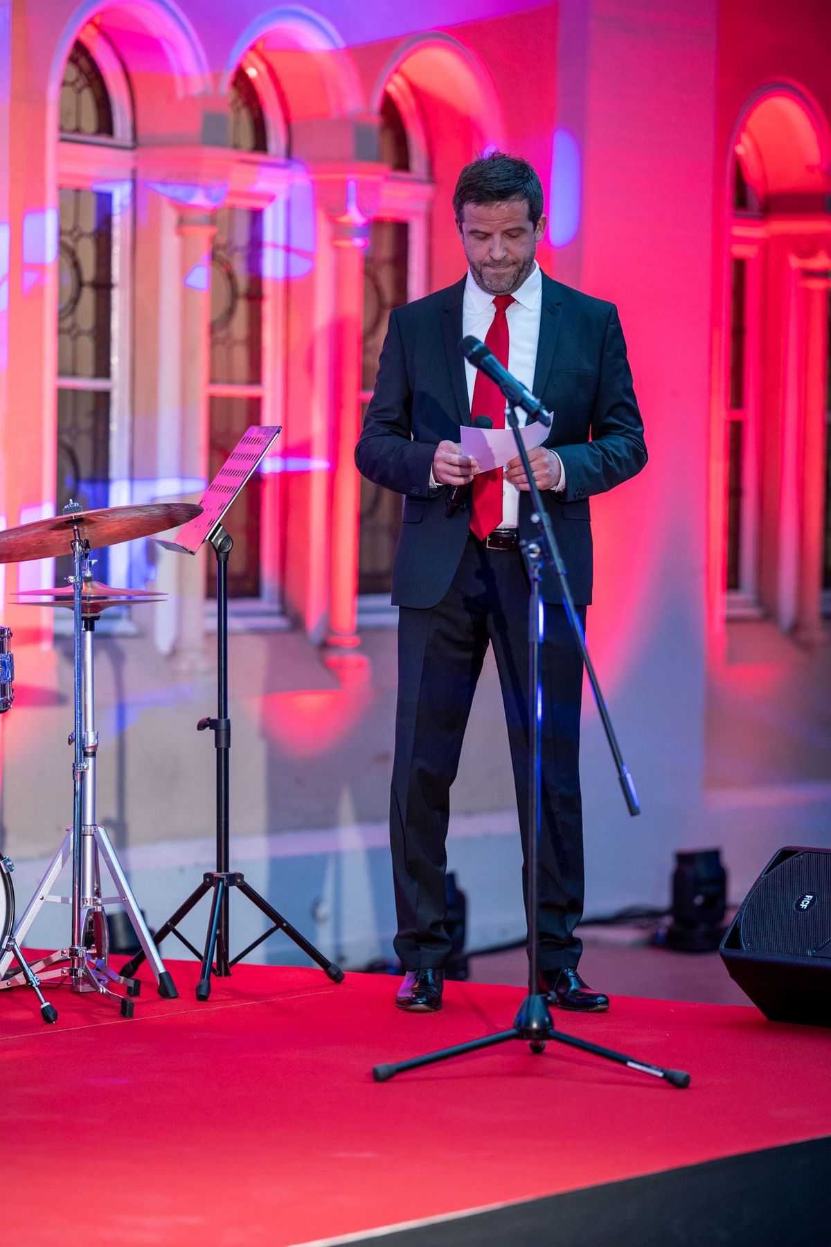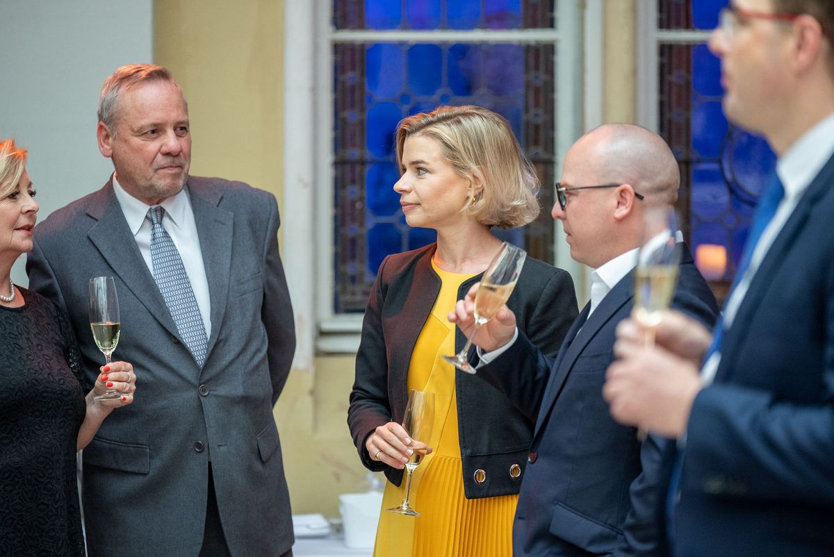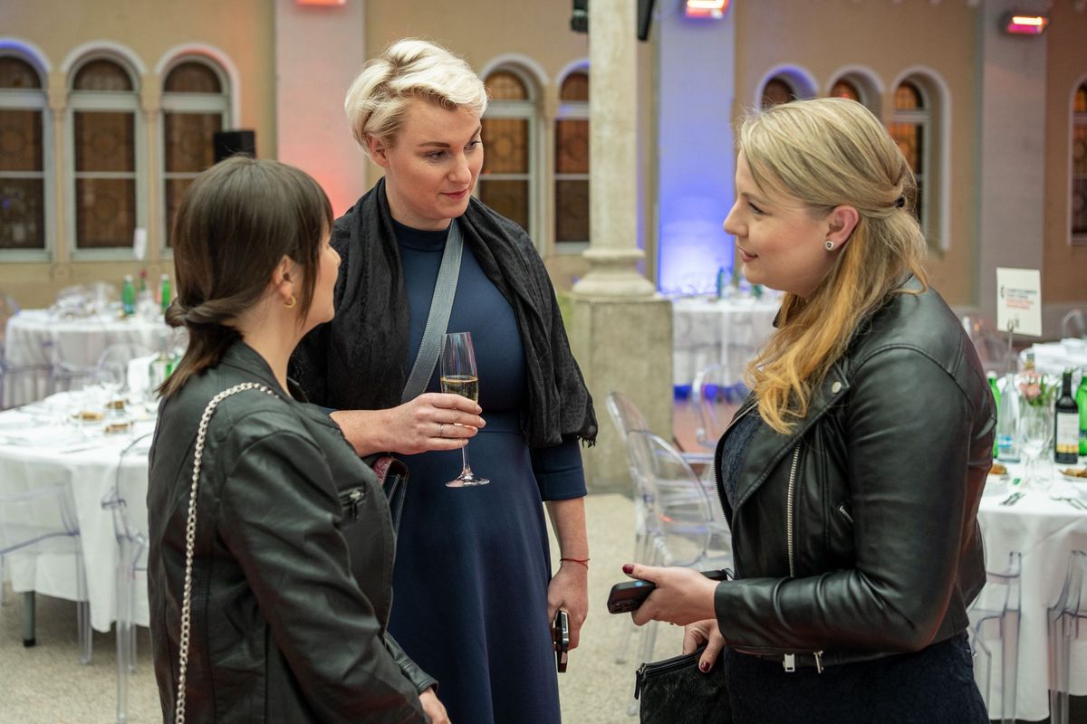 Kolem šesté hodiny večerní se v historických prostorách novorománského stylu postupně začali scházet hosté ve slavnostních róbách, kde na ně po příchodu čekalo malé občerstvení i welcome drink a zahájení akce v podobě proslovu francouzského velvyslance J. E. Alexise Dutertreho a předsedy Francouzsko-české obchodní komory, Rolanda Bourgeois.
