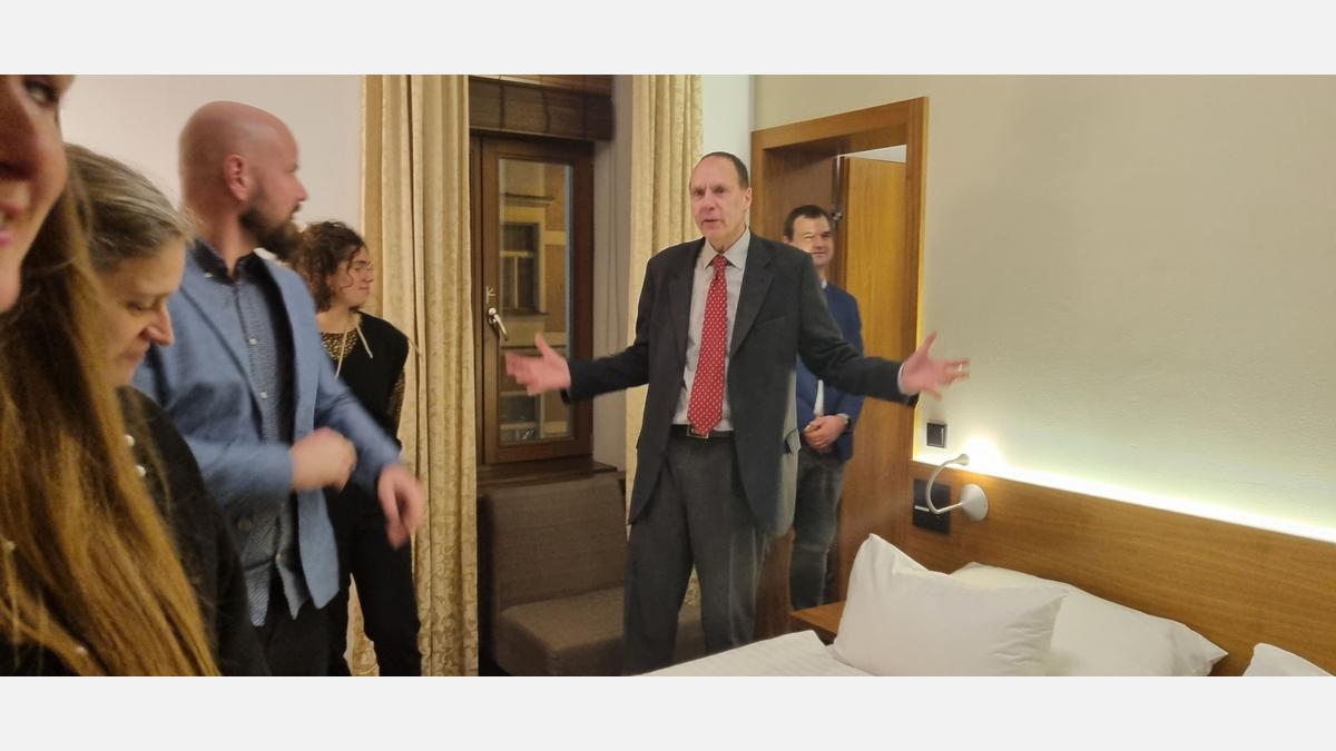 Na závěr tohoto setkání nás hostitelé pozvali na prohlídku několika pokojů a apartmánů, abychom si o ubytování na tomto jedinečném místě v Praze mohli udělat bližší představu.