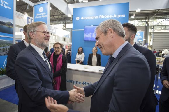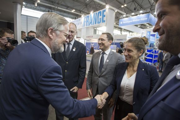 Petr Fiala v doprovodu oficiální delegace, ve které byli Jozef Síkela, ministr průmyslu a obchodu, Martin Kupka, ministr dopravy, Eva Decroix, poslankyně Parlamentu ČR, a Jaroslav Hanák, prezident Svazu průmyslu a dopravy ČR, přestřihl stuhu v barvach trikolóry Francouzského pavilonu a symbolicky ho tím otevřel. Slanostni zahájení proběhlo také za účasti Philippa Meuniera, viceprezidenta regionu Auvergne-Rhônes-Alpes a jím vedené delegace, dále Jeho Excelence Alexise Dutertra, velvyslance Francie v České republice, Tomáše Moravce, generálního ředitele, a Radoslava Klepáče, ředitele pro vnější vztahy a marketing Brněnských veletrhů (BVV), a v neposlední řadě Rolanda Bourgeoise, předsedy správní rady Francouzsko-české obchodní komory, a jejího ředitele Michala Macka.