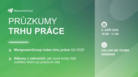 Společnost ManpowerGroup vás zve na pravidelnou prezentaci průzkumů ManpowerGroup monitorujících český a světový trh práce.