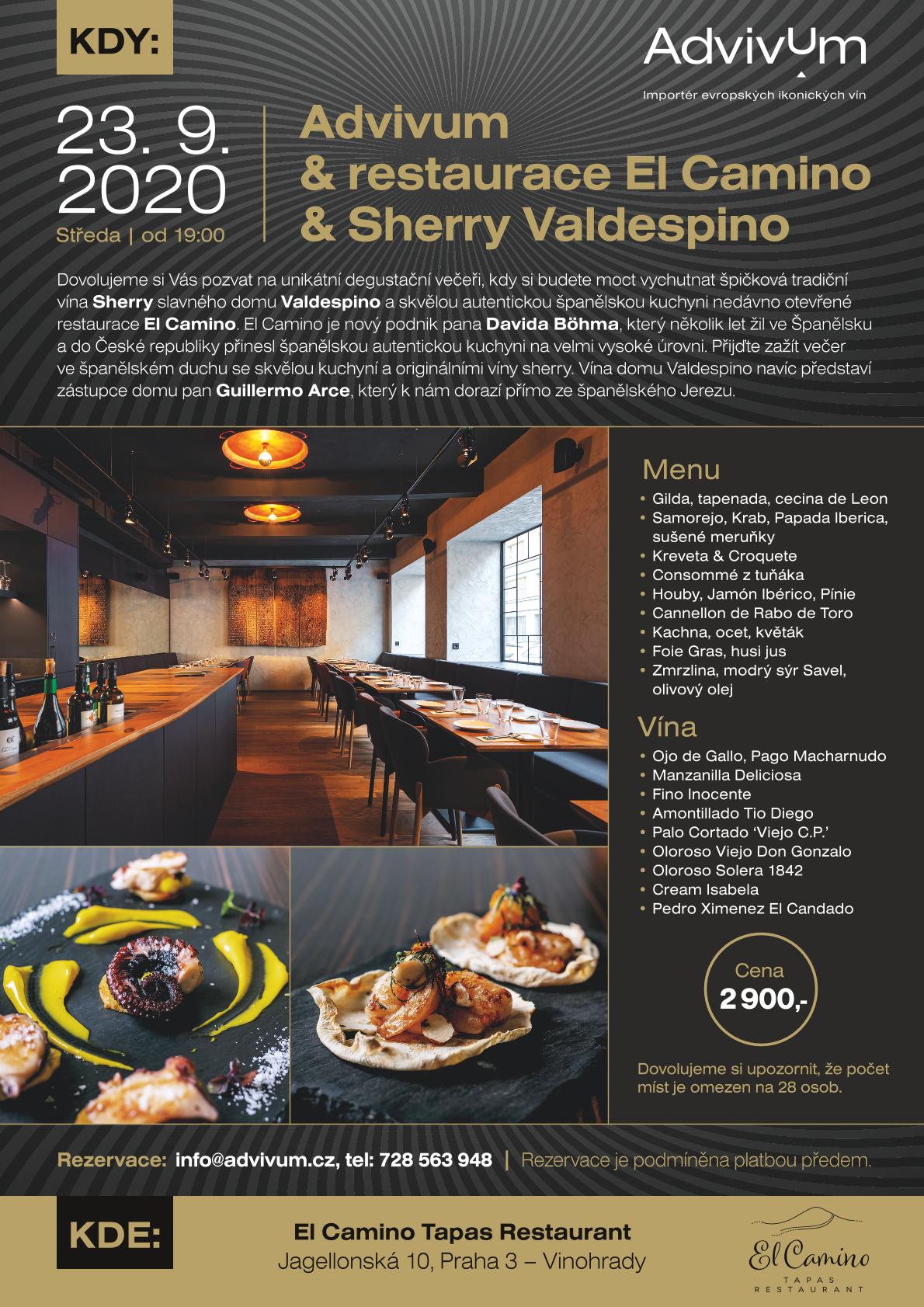 23.09.2020 19:00 Advivum & El Camino Tapas Restaurant (Jagellonská 10, Praha 3 Vinohrady)