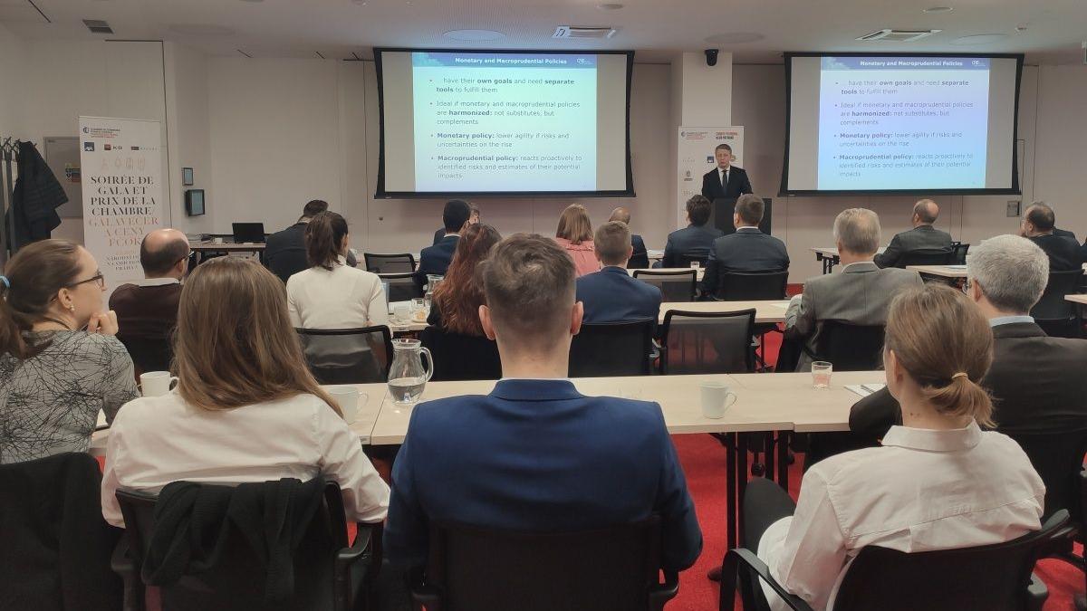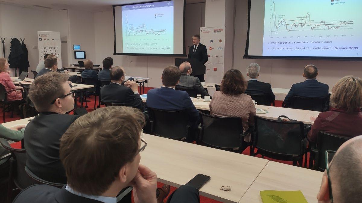 Tomáš Nidetzký během debaty s šéfy firem z francouzsko-českého prostředí připomněl dvojí roli České národní banky, která je garantem jak cenové, tak finanční stability. Nesmíme však zapomínat, že monetární politika je jen jednou z hospodářských politik státu. Viceguvernér si také s přítomnými manažery ověřoval, že je pro ně centrální banka dostatečně transparentní a čitelná, což mu hosté v sále obratem potvrdili.