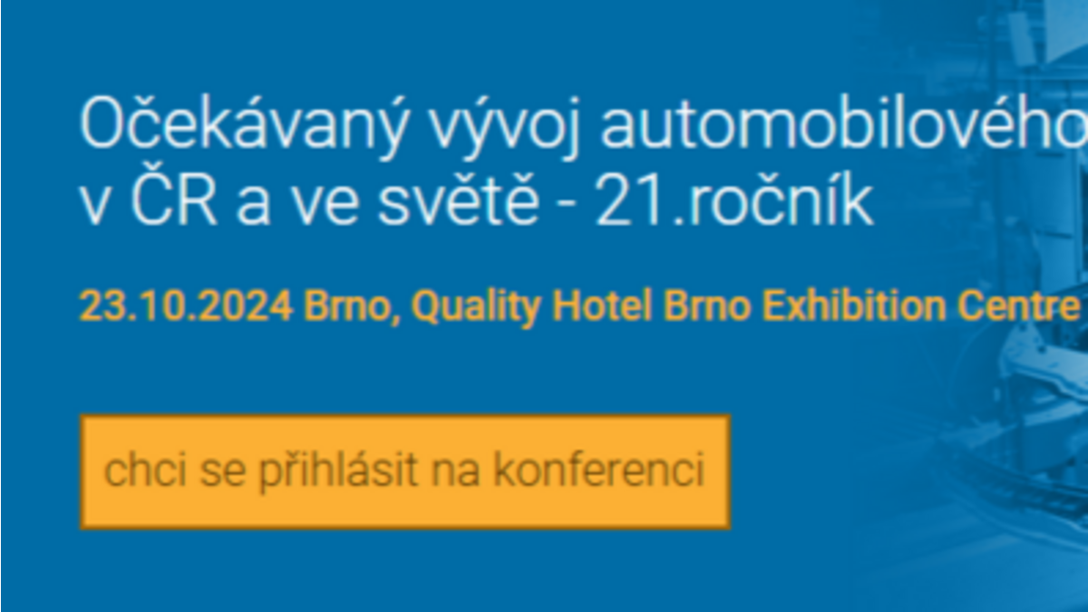 dovolujeme si Vás a Vaše kolegy srdečně pozvat na 21. ročník odborné konference na téma: „Očekávaný vývoj automobilového průmyslu v ČR a ve světě“, která se koná dne 23. 10. 2024 v Brně, v kongresovém centru hotelu Quality Hotel Brno Exhibition Centre (dřívější název hotelu Holiday Inn vedle brněnského výstaviště).