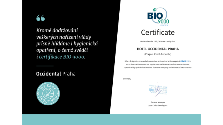 Čtyřhvězdičkový hotel Occidental Praha uspěl v certifikaci BIO 9000