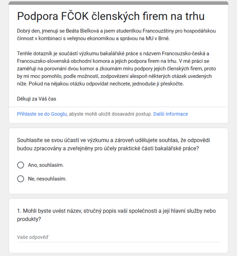 Dotazník: "Francouzsko-česká a Francouzsko-slovenská obchodní komora a jejich podpora firem na trhu"