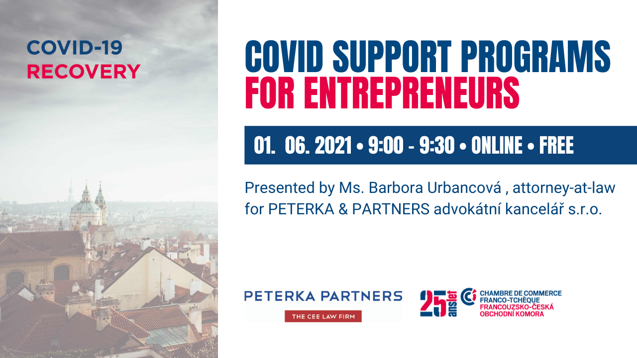 The webinar will be presented by Ms. Barbora Urbancová, attorney-at-law at PETERKA & PARTNERS advokátní kancelář s.r.o.
