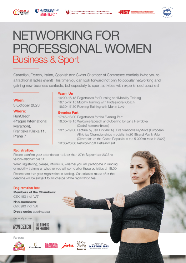 18h00–18h15 Discours de bienvenue et l'ouverture par Jana Havrdová (Chambre tchèque de fitness)