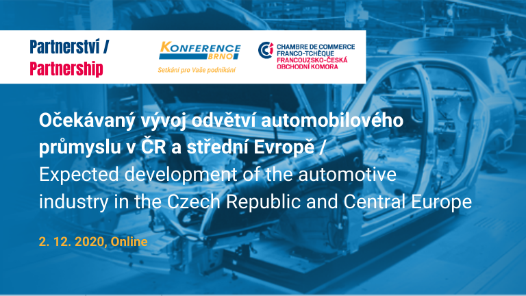 The French Czech Chamber of commerce is proud to be a partner of the 17th year of professional conference on the topic "Expected development of the automotive industry in the Czech Republic and Central Europe". Conference will be held on 2. 12. 2020 online.