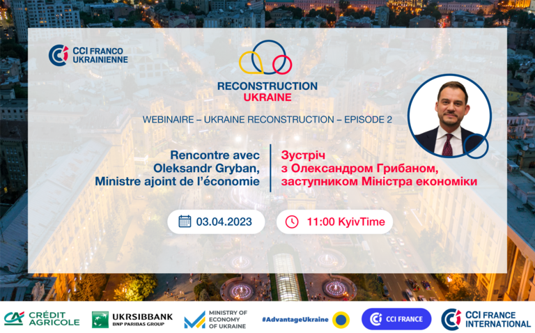Pour ce deuxième épisode de notre série de webinaires dédiée à la reconstruction de l’Ukraine, nous avons l’immense plaisir de vous inviter à une rencontre avec Oleksandr Gryban, ministre adjoint de l’économie.
