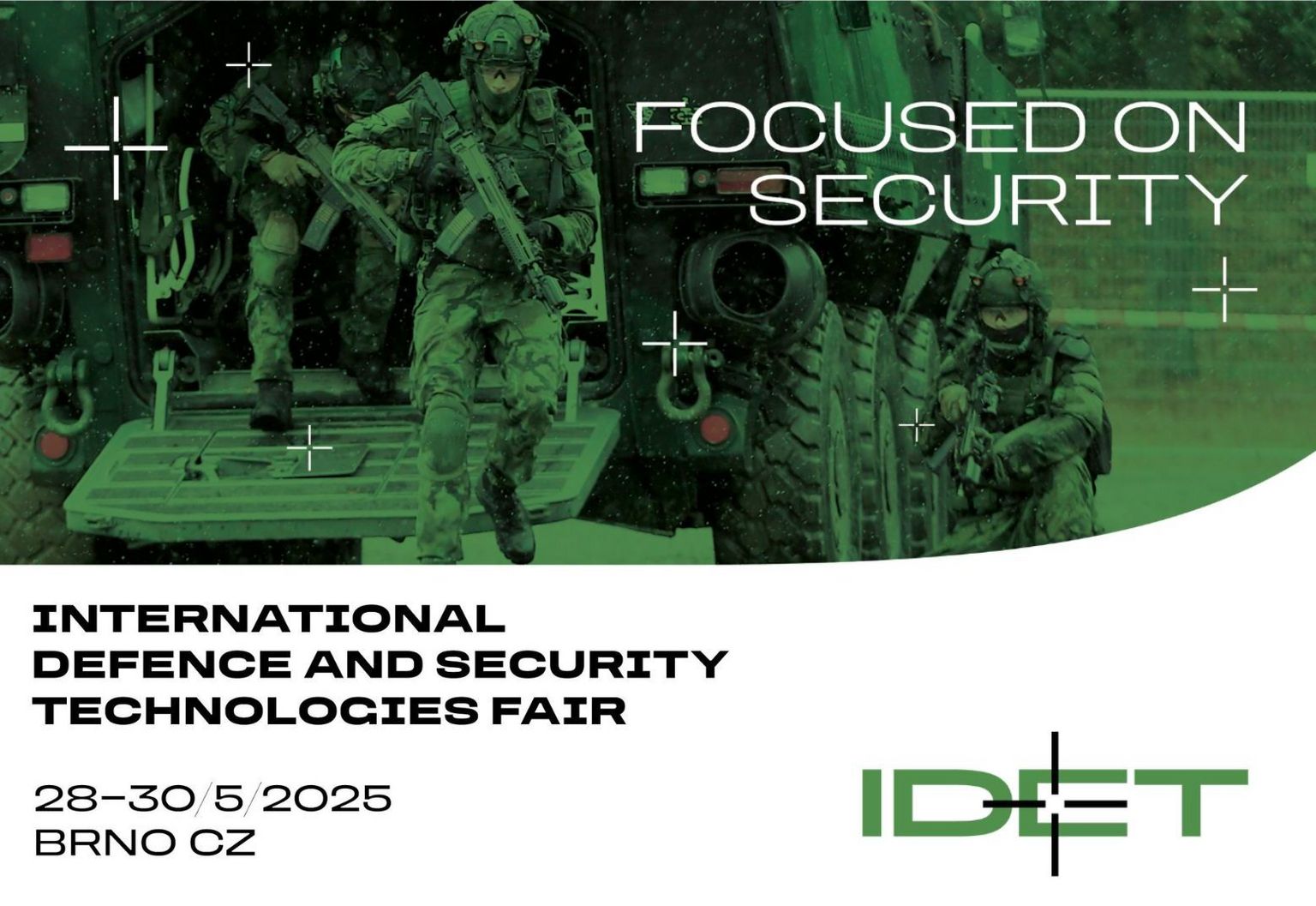 Organisé avec le soutien des plus hauts représentants politiques et militaires de la République tchèque, IDET met en avant le ministère de la Défense et les forces armées tchèques en tant que principaux exposants. Le salon attire également des délégations militaires internationales et des ministères étrangers de la Défense pour l'armement. En parallèle, les salons PYROS (lutte contre l'incendie) et ISET (technologies et services de sécurité) complètent cet événement incontournable.