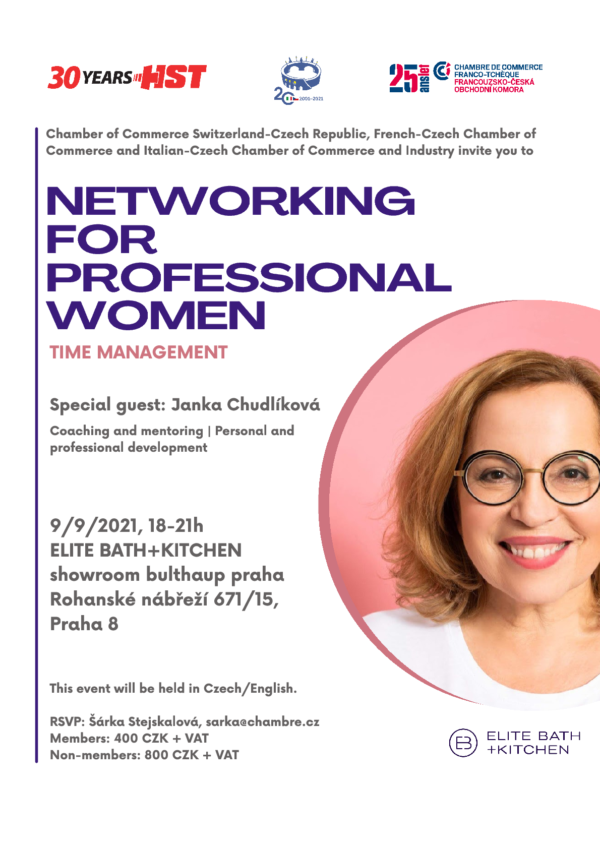Come to enjoy the networking event in the luxury Elite Bath & Kitchen showroom with the time-management presentation of Janka Chudlíková