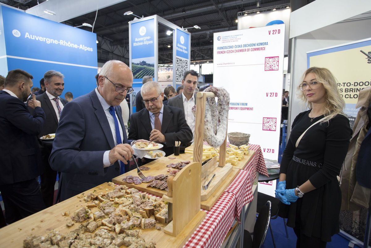 Après des discours des hôtes Philippe Meunier, Jérémy Thien et Roland Bourgeois, mais également de Joelle Seux, Responsable Europe & International de l'Agence Auvergne-Rhône-Alpes Entreprises et Arnaud Guigné, Chef du service économique de la Chambre de commerce franco-tchèque, les participants ont pu échanger avec les acteurs économiques présents à cet événement autour de spécialités gastronomiques de la région Auvergne-Rhône-Alpes, tout spécialement amenées en Moravie par l'Agence Auvergne-Rhône-Alpes !
