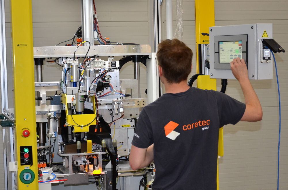 Coretec est une entreprise familiale avec 350 employés dans 3 pays, leurs clients sont basés dans 50 pays différents. Quand un client développe une pièce module pour un véhicule futur, l’équipe d’ingénieurs de Coretec dessine une solution comment produire cette pièce en grande quantité. Une fois le projet confirmé par le client, l’équipe technique construit une machine sur mesure dans l’atelier. Le processus comprend l’achat de pièces, la construction de la base de la machine, montage, câblage, réglage, tests et validation par le client. Une fois la machine terminée, elle est transportée chez le client et les experts de Coretec apprennent aux employés du client à travailler avec la machine. Les clients de Coretec CZ sont des sous-traitants de l’industrie automobile de rang 1 et aussi leurs sous-traitants.