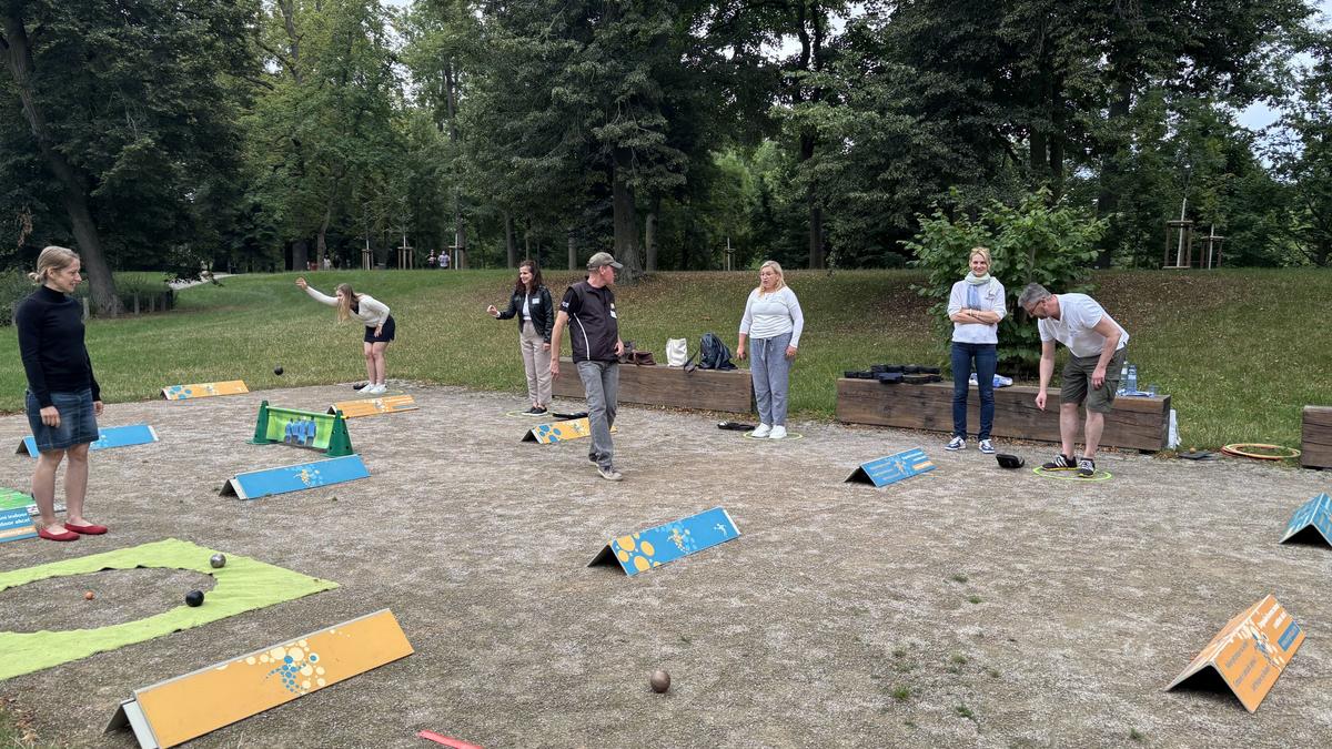 Le 28 juillet, nous nous sommes retrouvés au parc de Stromovka à Prague, où les participants ont eu l’occasion de réviser les règles de la pétanque, de perfectionner leur technique de jeu et de s’entraîner sous la direction de professionnels expérimentés de l’Association tchèque des clubs de pétanque (ČAPEK).