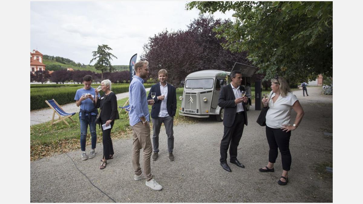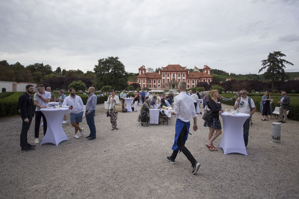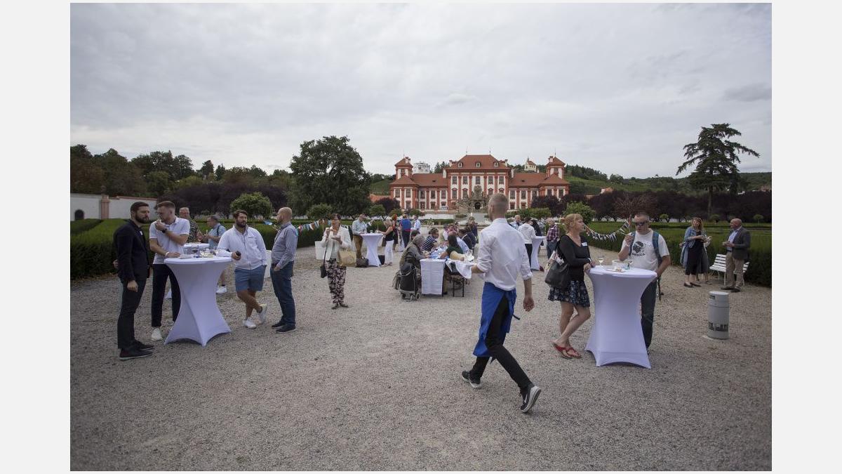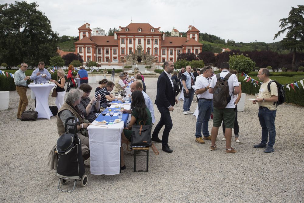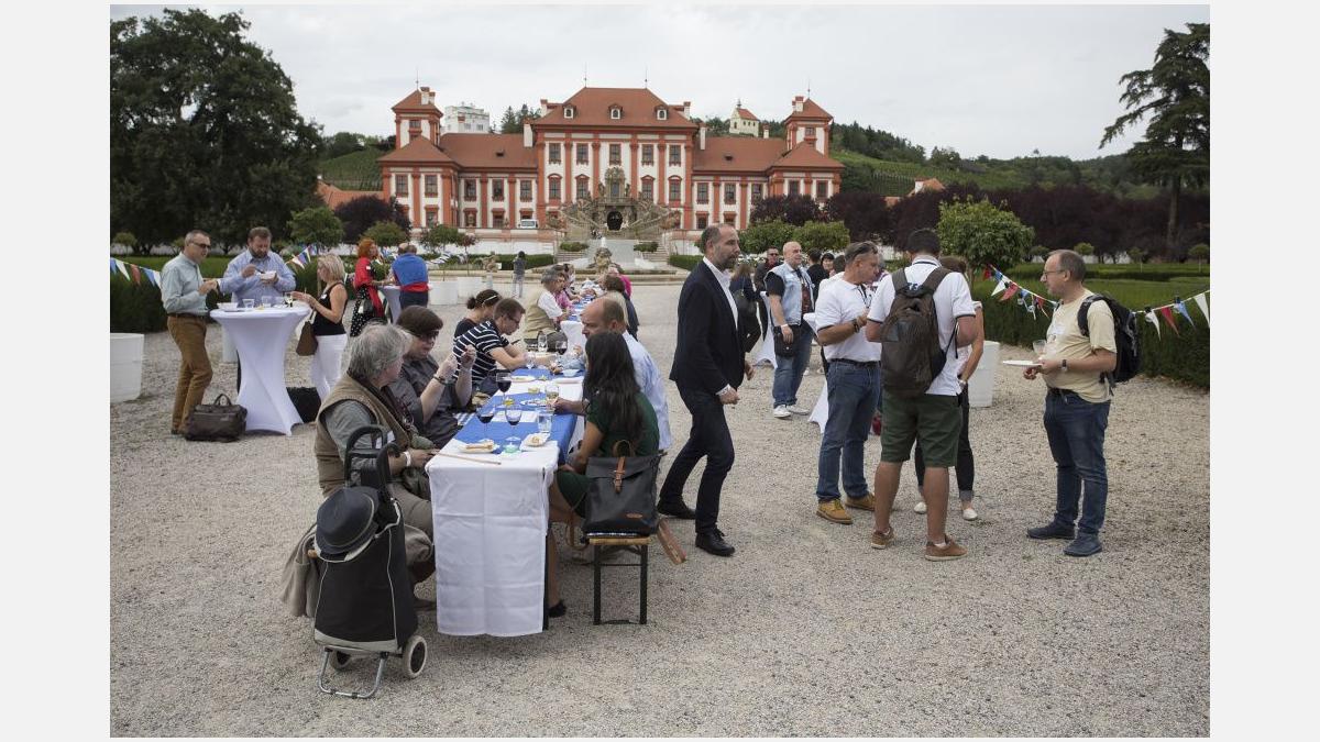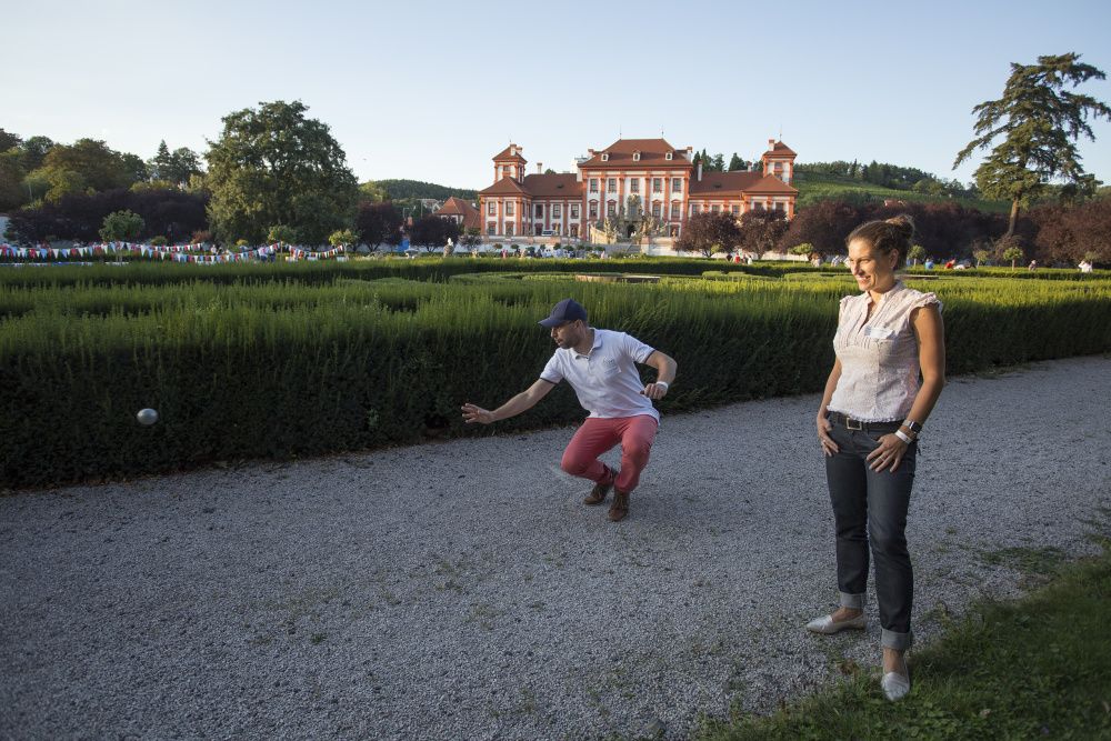 Pour l’occasion, les somptueux jardins du Château de Troja ont accueilli, en plus du tournoi, une guinguette animée par les membres restaurateurs de la Chambre. Fête populaire française en plein air, l’esprit guinguette a transformé les lieux : les jardins se sont colorés de bleu-blanc-rouge, les tables se sont drapées de nappes à carreaux et le traditionnel accordéon a bercé les festivités. Pas de guinguette sans ses spécialités françaises ! Toutes étaient au rendez-vous : brochettes, vins, terrines, croque-monsieur de Chez Greg, fromages des quatre coins de la France de Fransýr, des saucissons de chez Kazak et le vin blanc de Moravie par Vinselekt Michlovský.