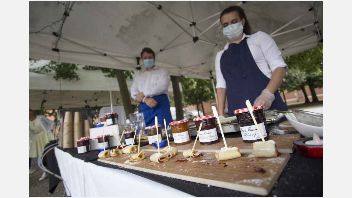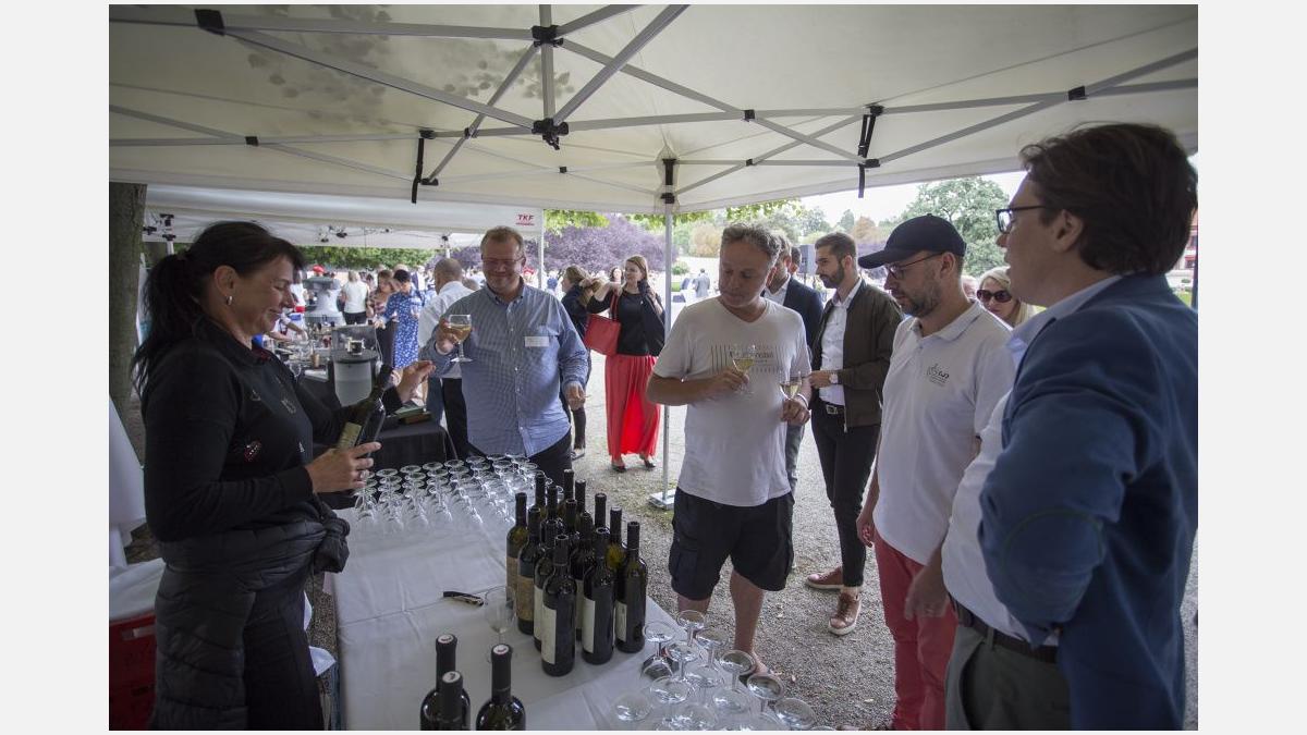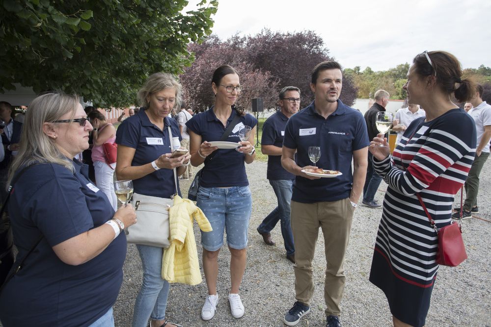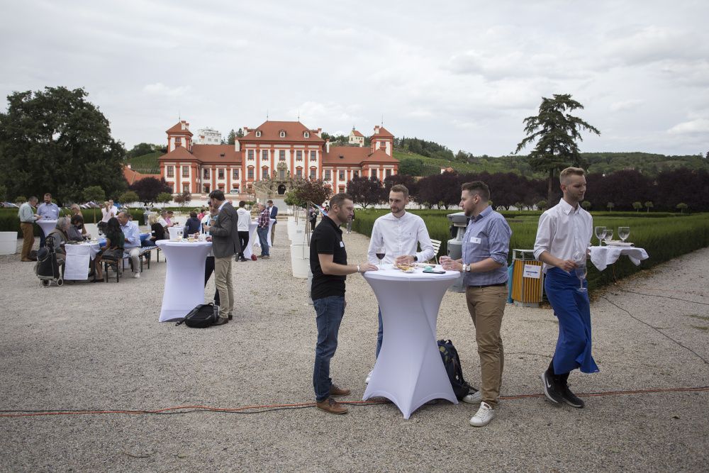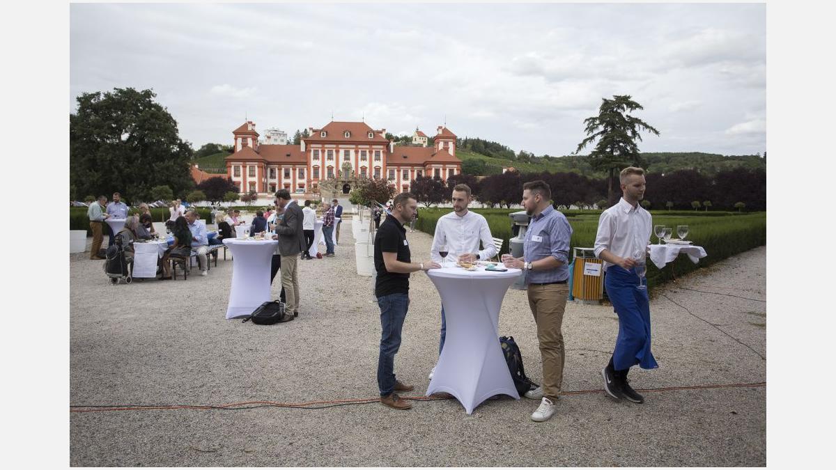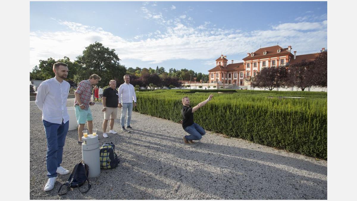 Pour l’occasion, les somptueux jardins du Château de Troja ont accueilli, en plus du tournoi, une guinguette animée par les membres restaurateurs de la Chambre. Fête populaire française en plein air, l’esprit guinguette a transformé les lieux : les jardins se sont colorés de bleu-blanc-rouge, les tables se sont drapées de nappes à carreaux et le traditionnel accordéon a bercé les festivités. Pas de guinguette sans ses spécialités françaises ! Toutes étaient au rendez-vous : brochettes, vins, terrines, croque-monsieur de Chez Greg, fromages des quatre coins de la France de Fransýr, des saucissons de chez Kazak et le vin blanc de Moravie par Vinselekt Michlovský.