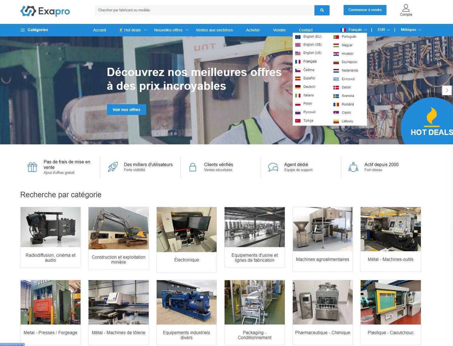 Exapro, un des principaux acteurs du marché des machines industrielles d'occasion, a annoncé une expansion significative, soulignant son engagement à offrir un service exceptionnel et des solutions innovantes à une clientèle internationale. Cette nouvelle phase de développement comprend l'introduction de fonctionnalités et de services conçus pour répondre aux exigences évolutives du marché. Voici un aperçu approfondi des derniers développements chez Exapro et comment ils améliorent leur service pour un public mondial. Présence à l'internationale : Exapro est désormais disponible en 20 langues Dans le but d'améliorer l'expérience client et d'élargir sa présence sur le marché, Exapro a considérablement élargi le choix de langues disponibles sur le site. Reconnaissant que la langue peut être une barrière dans les transactions complexes, en particulier dans le secteur des machines industrielles, Exapro a ajouté 11 nouvelles langues à sa plateforme. Cette expansion permet à l'entreprise de servir un public plus large, offrant un support et des services dans leur langue maternelle, pour garantir des transactions plus fluides et plus efficaces. Les nouvelles langues incluent le portugais, le hongrois, le croate, le bulgare, le néerlandais, le serbe, le lituanien, le danois, le grec, le suédois et le roumain. Cette addition significative assure que davantage de clients puissent naviguer sur le site avec facilité, comprendre en détail les offres et communiquer efficacement avec l'équipe Exapro. Chaque nouvelle langue soutient la mission de fournir un service inégalé et de rendre le marché mondial des machines industrielles d'occasion, plus inclusif et accessible. Gestion complète des transactions de A à Z Exapro comprend que l'achat ou la vente de machines industrielles d'occasion peut être une tâche complexe et difficile, en particulier pour les clients non familiers avec les règlementations et procédures du commerce international. Pour répondre à ces préoccupations, ils offrent désormais des services de gestion complète couvrant tous les aspects de la transaction du début à la fin. Gestion complète des transactions Les services de gestion des transactions d'Exapro s'adressent aux clients qui souhaitent un service tout compris ou à ceux préoccupés par la complexité de l'importation et de l'exportation de machines. Le processus comprend : Consultation initiale et évaluation: Comprendre les besoins du client et offrir une évaluation précise de la machine. Gestion de la documentation: Gérer tous les documents nécessaires, en assurant la conformité avec les lois et règlementations du commerce international. Facturation et gestion des paiements: Superviser les processus de facturation et de paiement, garantissant des transactions financières transparentes et sécurisées. Coordination et communication: Maintenir des lignes de communication ouvertes, informer les clients de l'avancement et répondre rapidement aux préoccupations. En offrant ces services complets, Exapro assure un processus de transaction fluide et sans stress, permettant aux clients de se concentrer sur leurs opérations commerciales principales. Devis d'expédition et support logistique L'expédition de machines lourdes peut être complexe et coûteuse. Pour aider les clients, Exapro fournit des devis d'expédition détaillés sur demande, travaillant avec des partenaires logistiques réputés pour assurer un transport fiable et efficace. Leur support logistique comprend : Estimations détaillées des coûts d'expédition: Fournir aux clients des estimations de coûts d'expédition précises et complètes. Assistance pour sélectionner les meilleures options d'expédition: Aider les clients à choisir les méthodes d'expédition les plus efficaces et économiques. Coordination avec les compagnies de transport: Assurer une livraison en temps voulu et en toute sécurité en coordination avec des compagnies de transport expérimentées. Dédouanement et documentation: Aider les clients avec le dédouanement et gérer toute la documentation connexe pour éviter tout retard ou complication. Ces services logistiques visent à fournir une solution complète, couvrant tous les aspects de la transaction, y compris le composant logistique souvent négligé. Services d'enchères pour des ventes rapides Pour les clients priorisant la rapidité à la maximisation des revenus, Exapro offre des services d'enchères spécialisés conçus pour faciliter des ventes rapides tout en obtenant des offres compétitives. Avantages des services d'enchères Rapidité: Convertir les actifs en liquidités rapidement, en réduisant le temps pendant lequel les machines restent inutilisées. Portée mondiale: Atteindre un public mondial, en augmentant les chances d'attirer des acheteurs sérieux rapidement. Transparence: Assurer un processus d'enchères transparent, en donnant aux acheteurs et aux vendeurs confiance dans la procédure et la vente. Les services d'enchères d'Exapro sont adaptés pour répondre aux besoins des clients ayant la nécessité de vendre des machines rapidement, en tirant parti de leur plateforme internationale pour connecter les vendeurs aux acheteurs du monde entier. Outils avancés d'évaluation des machines Comprendre la valeur des machines industrielles d'occasion est crucial pour les acheteurs et les vendeurs. Exapro a développé des outils puissants qui fournissent des estimations précises et fiables de la valeur des machines. Ces outils prennent en compte des facteurs tels que : Âge et état de la machine: Évaluer l'âge et l'état actuel de la machine pour déterminer sa valeur marchande. Marque et modèle: Tenir compte de la réputation et de la demande pour des marques et modèles spécifiques. Demande et tendances du marché: Analyser la demande et les tendances actuelles du marché pour fournir des évaluations à jour. Données historiques de ventes: Utilise