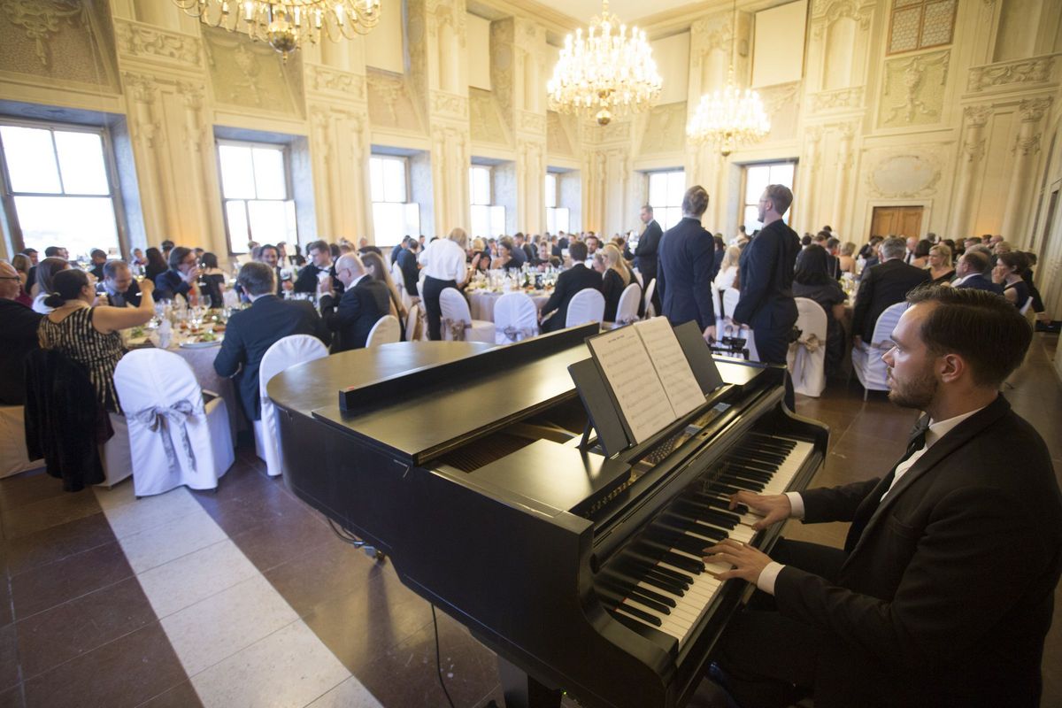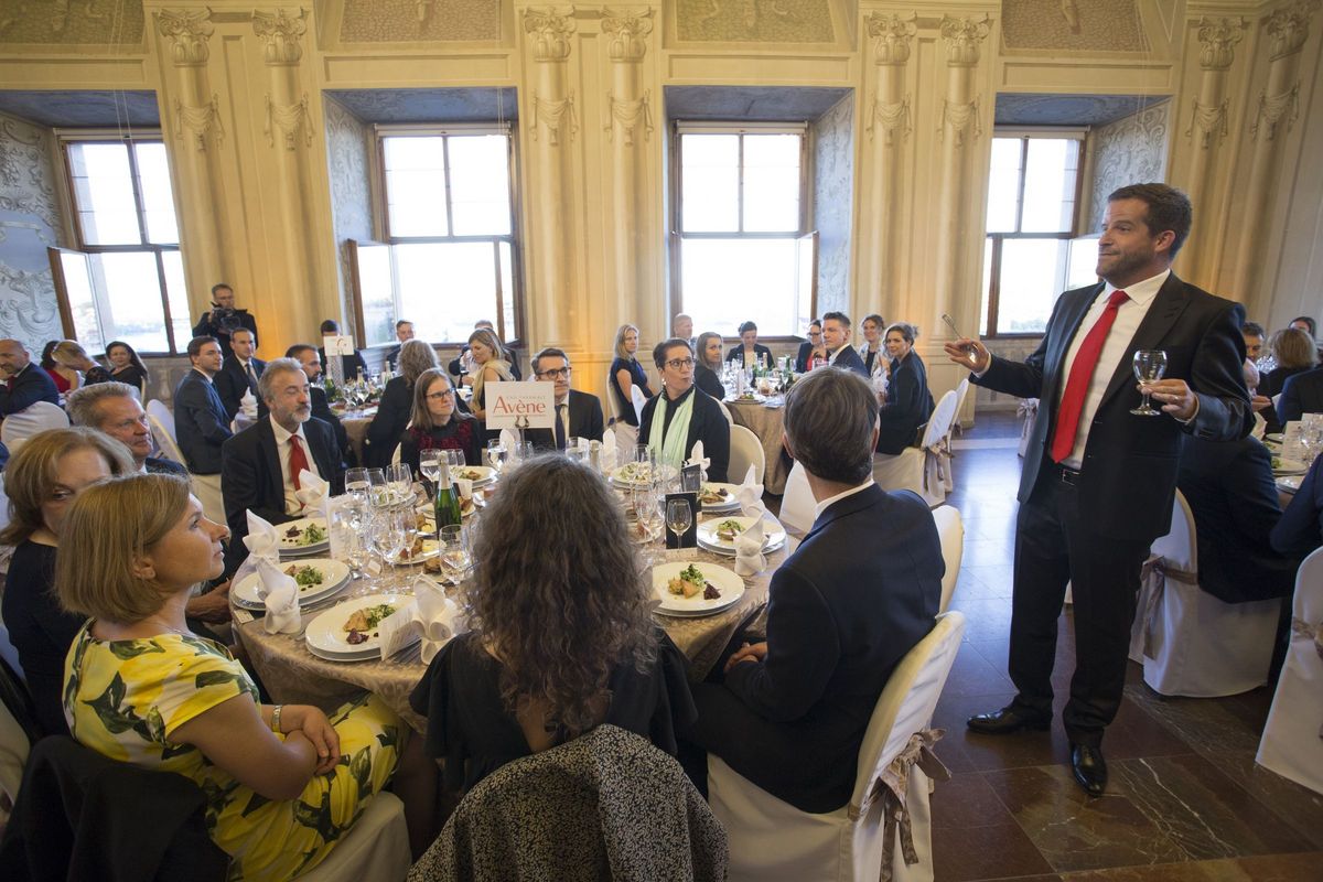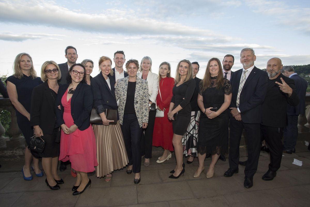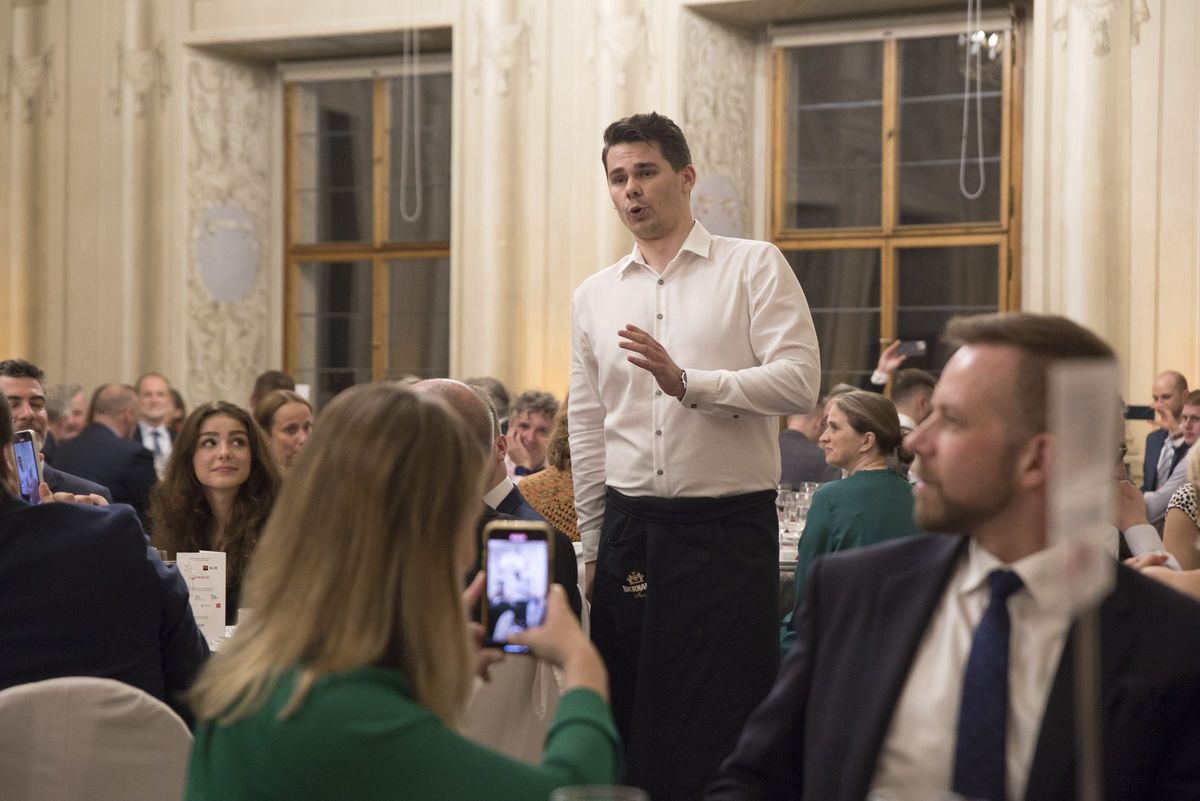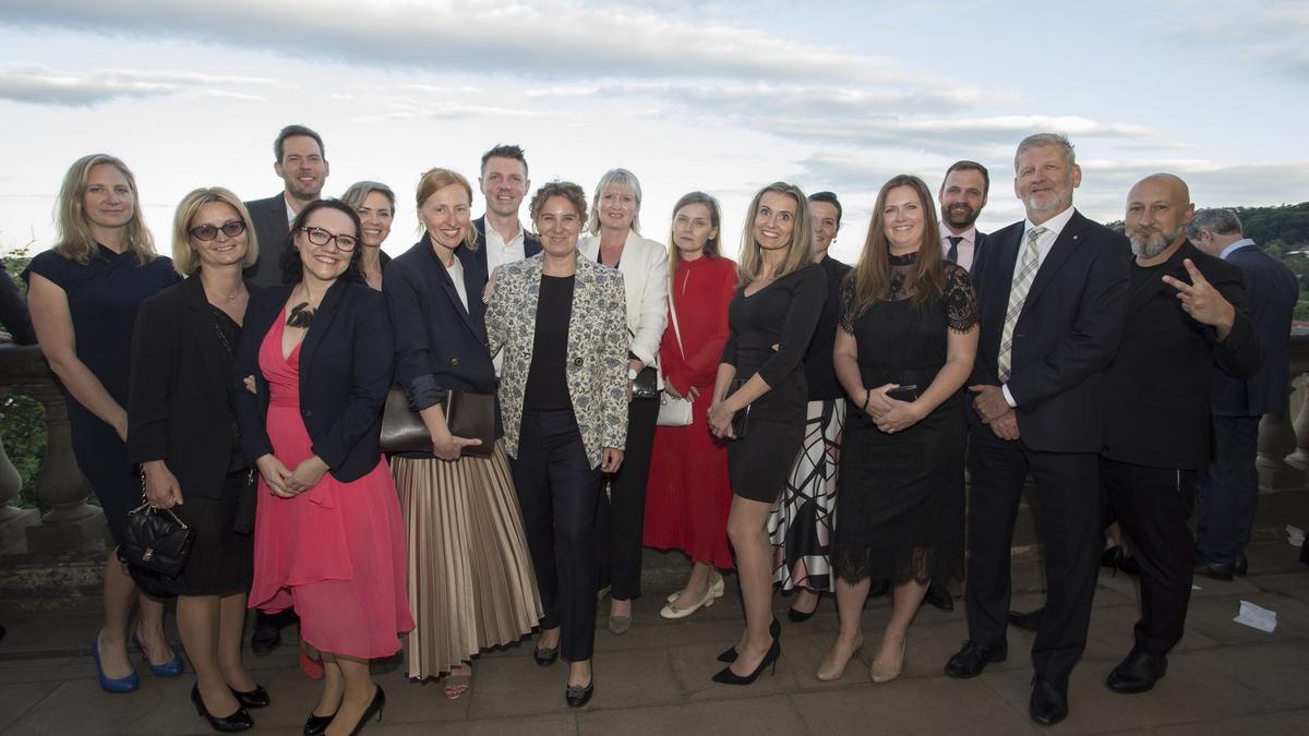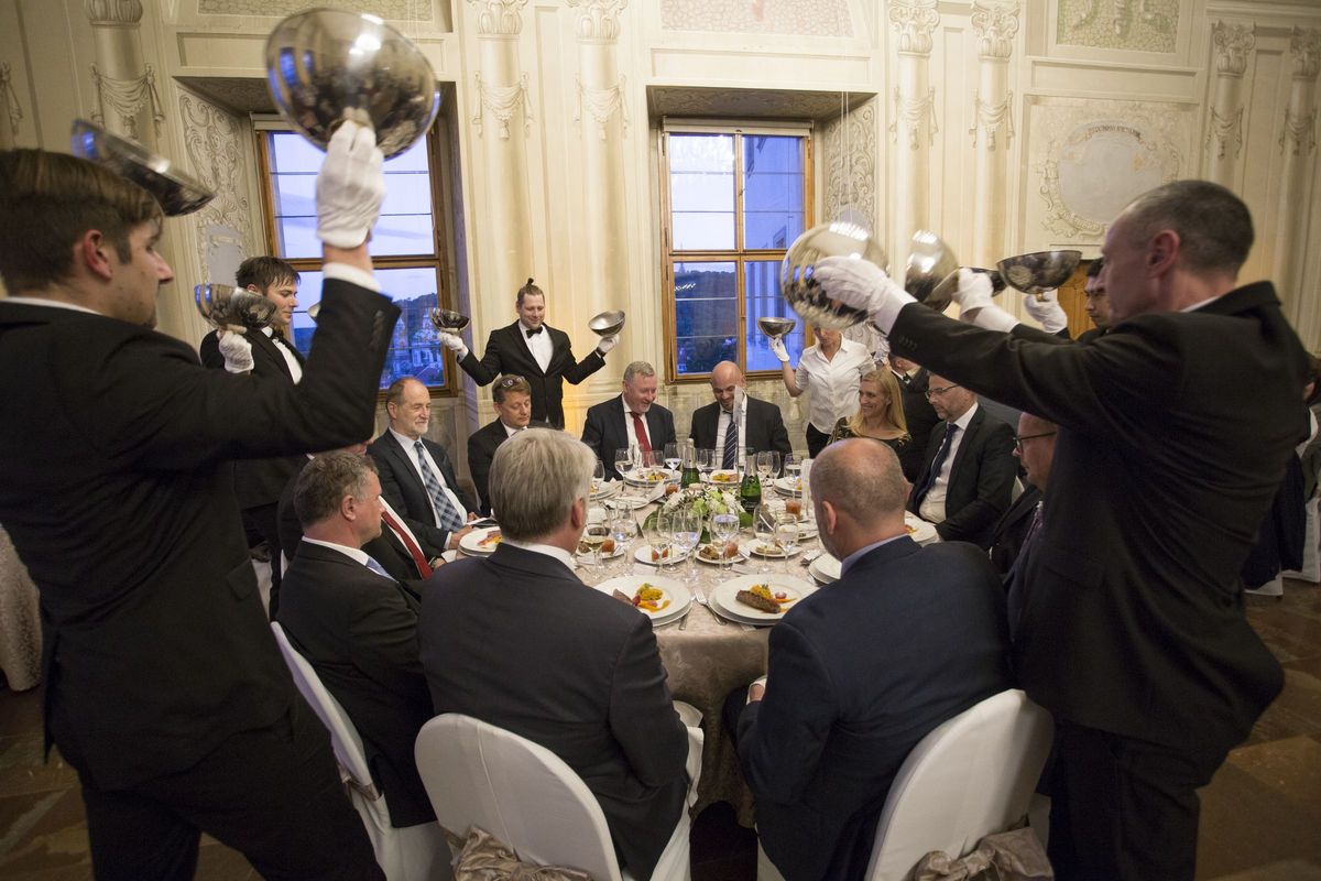 Les 190 participants ont pu profiter d’un repas gastronomique, dans un cadre exceptionnel avec une vue unique et imprenable sur la vieille ville de Prague. La soirée, d’abord rythmée par les mélodies du pianiste présent pour l’occasion, a connu un rebondissement musicalement surprenant avec l’arrivée de singing waiters qui ont fini d’enchanter l’auditoire.