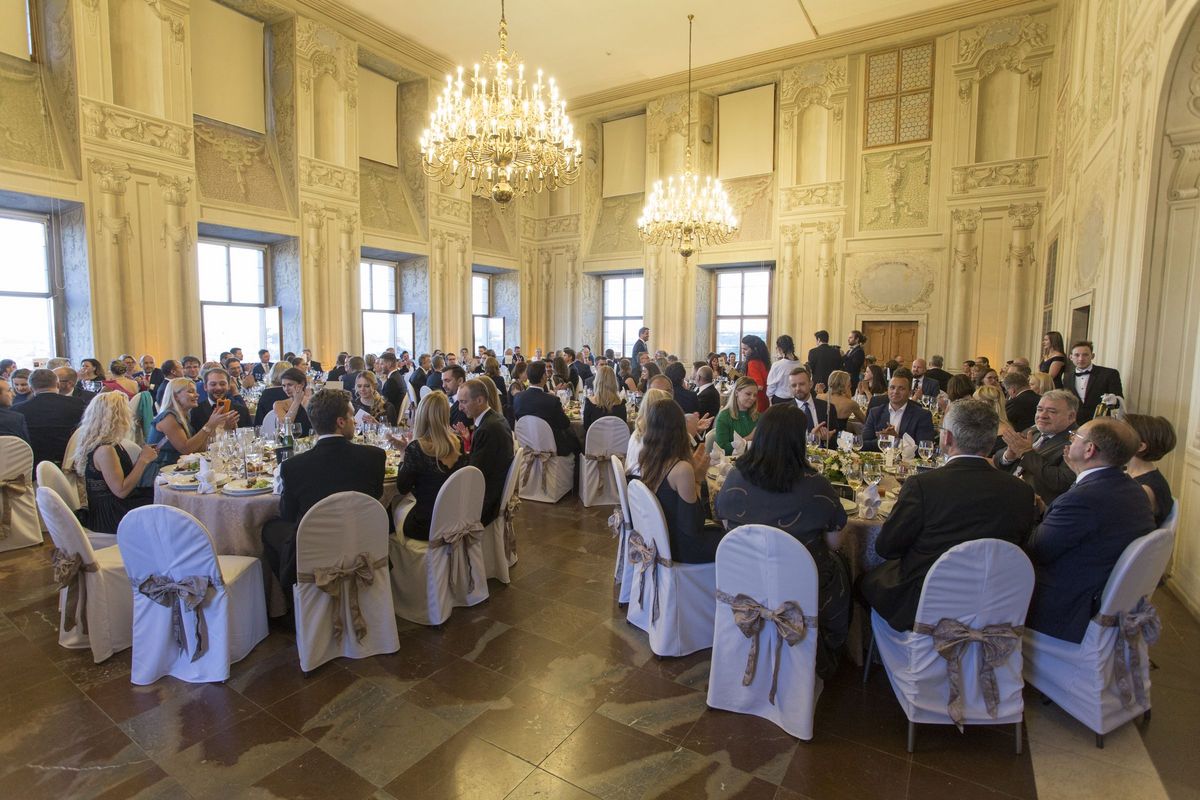 À la suite de la cérémonie de remise des Prix de la CCFT 2022, le Gala de la Chambre de commerce franco-tchèque a débuté dans l’Imperial hall du Palais Lobkowicz.