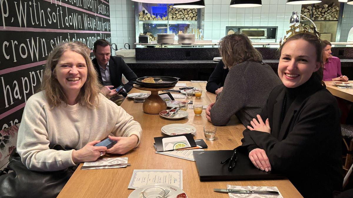 Outre les opportunités de réseautage, l'attraction de l'événement était donc la dégustation de Galette des Rois, dans lesquelles deux "fèves" étaient cachées. La participante, qui a découvert l'une des fève dans sa part de gâteau (traditionnellement une figurine en céramique), est devenue selon la tradition française la reine de la soirée et a pu arboré une couronne en papier.