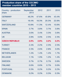 Le secteur de l’industrie mécanique est représenté en République tchèque par la production d’une grande gamme de machines, ce qui le classe parmi les branches les plus importantes de l’industrie de transformation. Plus de 1 050 entreprises fournissent le matériel pour des usines entières, fabrique des machines ainsi que les biens d’industrie mécanique domestique.