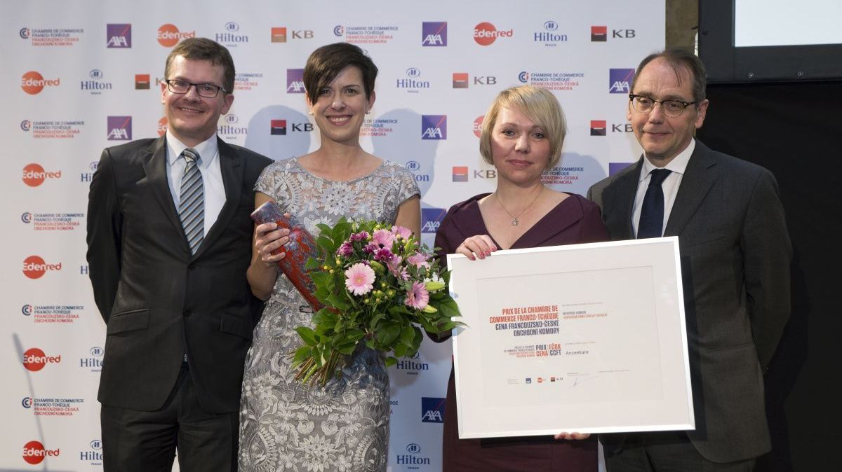 Nicholas Eich, Edenred, Anna Jakoubková, Kateřina Rampasová (Accenture), SE Roland Galharague, ambassadeur de France à Prague (de gauche à droite)