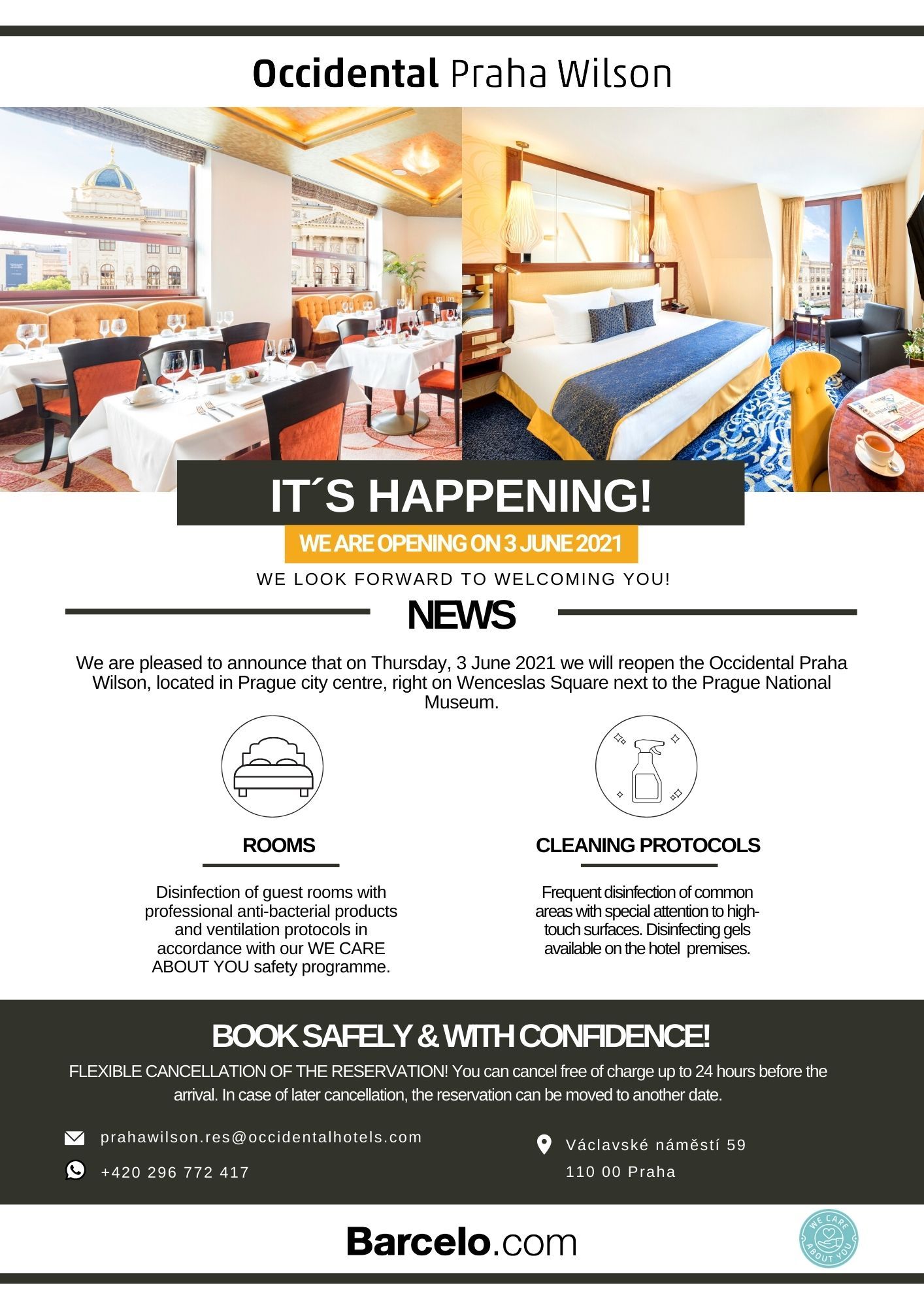 Occidental Praha Wilson hotel will reopen on Thursday, June 3, 2021!