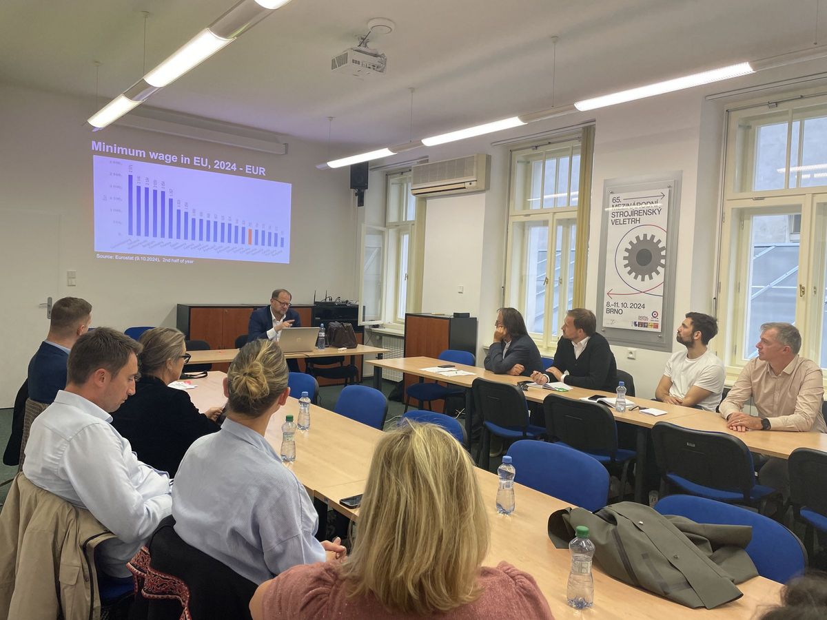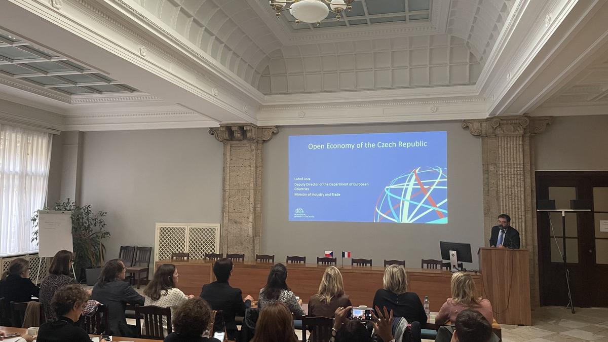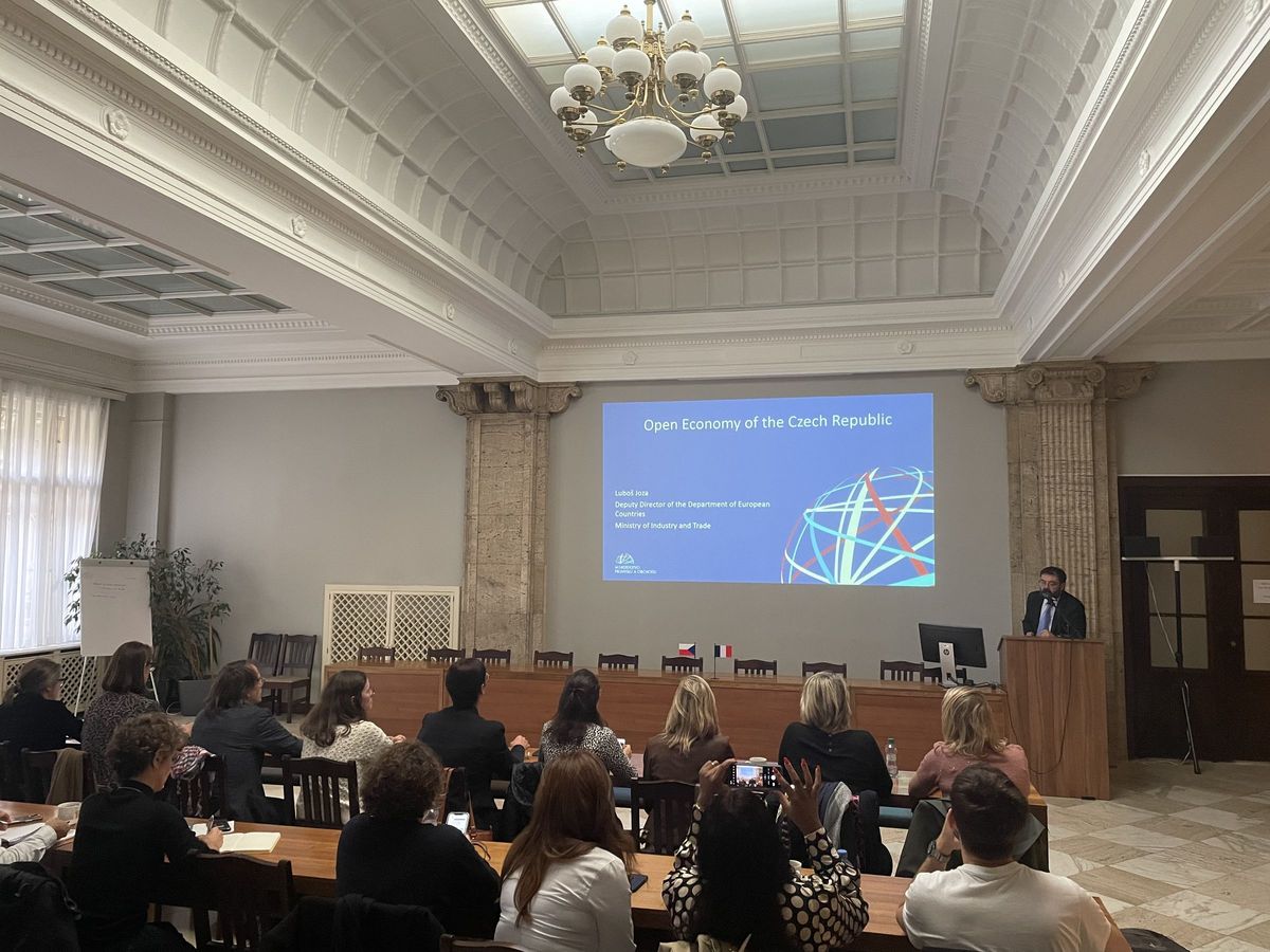 Ensuite, les participants ont visité le ministère de l'Industrie et du Commerce de la République tchèque (MPO), où Luboš JOZA, du département des pays de l'UE et de l'AELE, a discuté principalement de l'économie tchèque et de la République tchèque en tant que pays industriel. Petr HECZKO, directeur du département des analyses et des informations de CzechInvest (Agence de promotion des entreprises et des investissements), a ensuite détaillé la situation économique actuelle en République tchèque et l'environnement entrepreneurial, en soulignant les politiques gouvernementales actuelles.