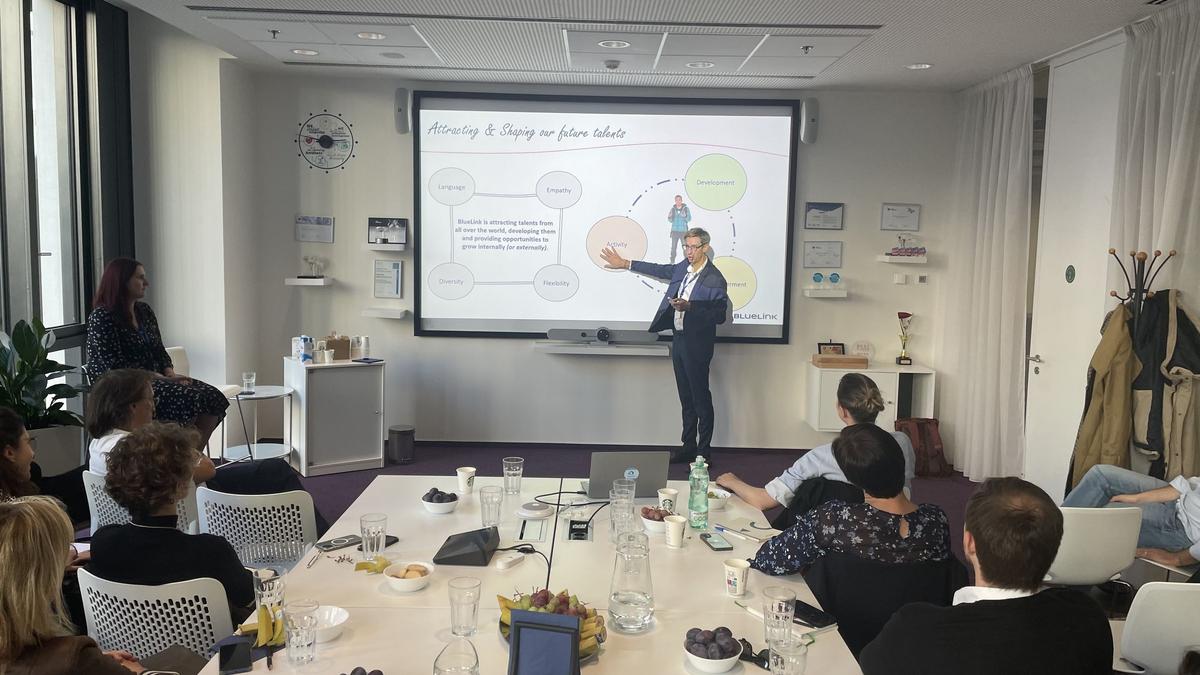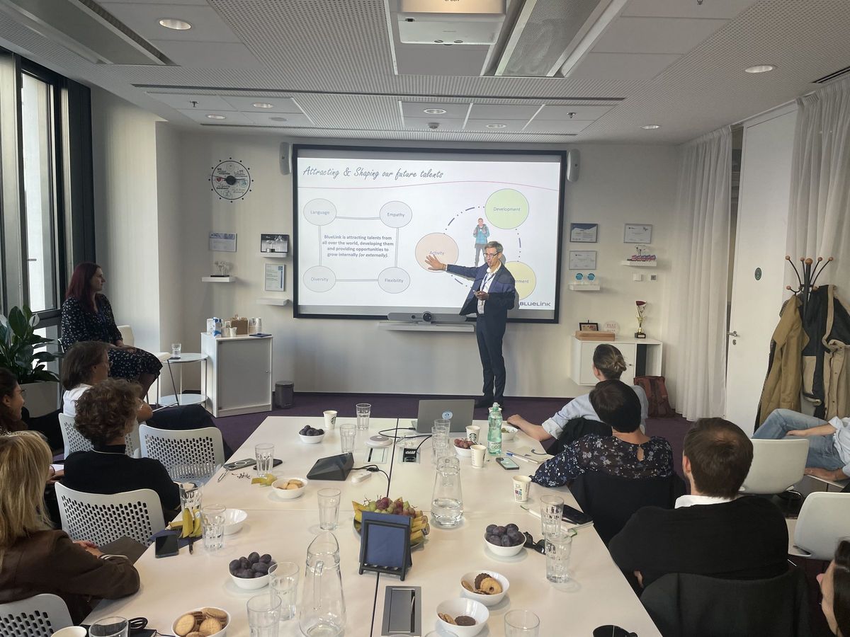 Le programme a débuté le mercredi 9 octobre par une visite de la société BlueLink International CZ, où Vincent LEONARDI, directeur général de BlueLink et membre du conseil d'administration de la Chambre, a présenté la société BlueLink, ses stratégies de recrutement, de fidélisation et de développement de la main-d'œuvre. Tomáš Ervín DOMBROVSKÝ, expert et analyste du marché du travail (Alma Career), intervenant régulier au Club RH de la CCFT, a quant à lui fait une présentation sur le marché du travail tchèque et les ressources humaines en République tchèque.