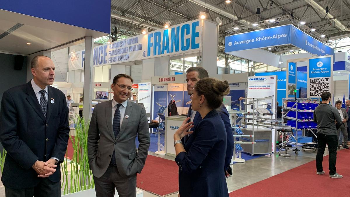 Venu inaugurer le pavillon, l’homme le plus important de l’exécutif tchèque a pu échanger avec les acteurs économiques présents. Jozef Síkela, ministre de l’Industrie et du Commerce, Martin Kupka, ministre des Transports, Eva Decroix, députée de la République tchèque, Jaroslav Hanák, président de la Confédération de l’industrie tchéque (SPČR) et Tomáš Moravec, Directeur général des Salons de Brno (BVV) étaient également présents dans cette délégation qui a rencontré, une fois son arrivée sur les Pavillons France et Auvergne-Rhône-Alpes, Philippe Meunier vice-président de la région Auvergne-Rhône-Alpes (et sa délégation régionale), Son Excellence Alexis Dutertre, Ambassadeur de France en République tchèque, Radoslav Klepáč, directeur des relations extrernes et du marketing des Salons de Brno (BVV) ainsi que Roland Bourgeois, président de la Chambre de commerce franco-tchèque.